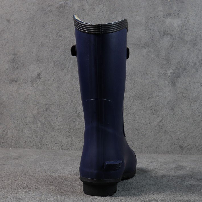 かかと部のキックバックは脱ぐときに片足をひっかけて脱ぎやすくする役割の実用性を考慮したラバーブーツです。