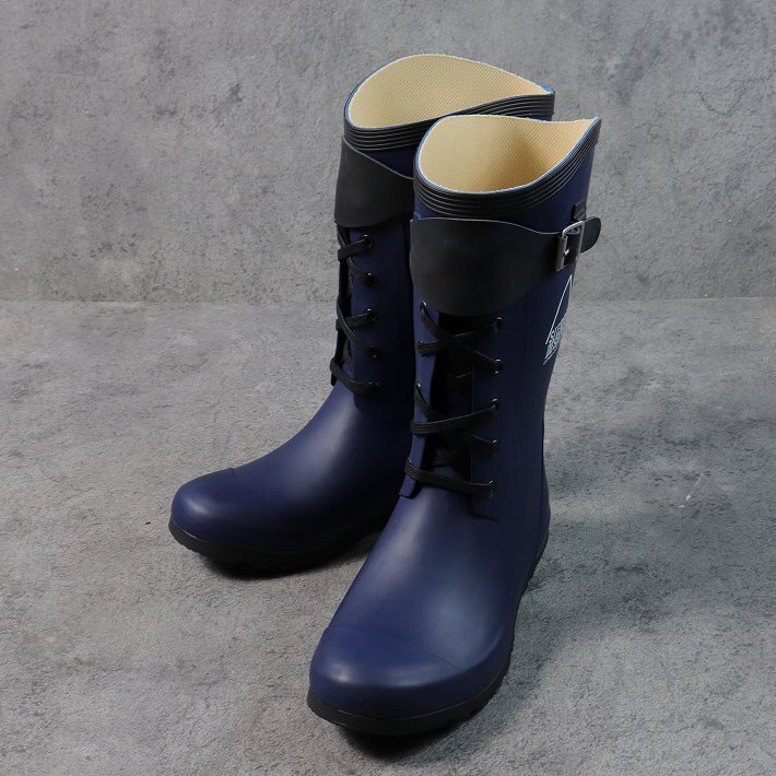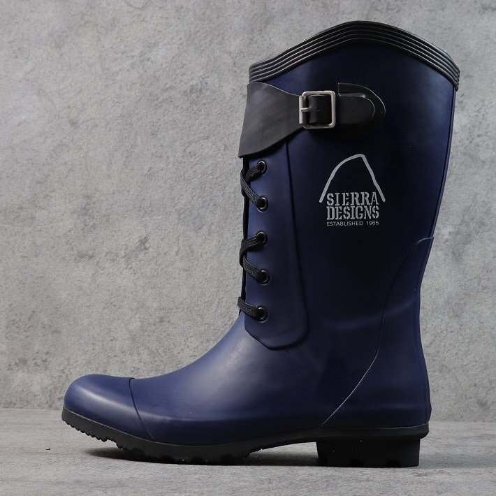 訳あり SIERRA DESIGNS レインブーツ メンズ レディース レースアップ 長靴 ゴム長 キックバック付 SD2005 ネイビー L (26.0cm相当) / 新品