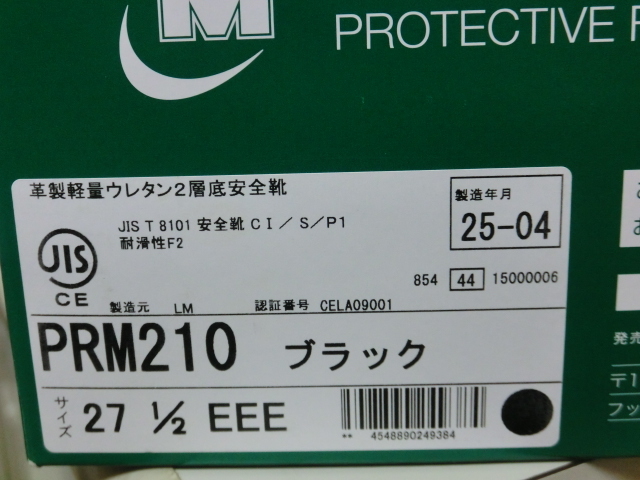 新品 ミドリ安全 革製軽量ウレタン2層底安全靴 PRM210 ブラック 27.5cm