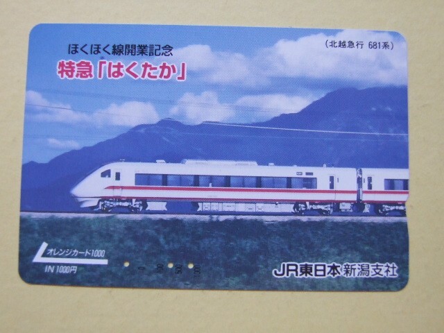 ◇オレンジカード 使用済 多穴券◇JR東日本 新潟支社『ほくほく線開業記念 特急「はくたか」(北越急行 681系)』USED品 009704