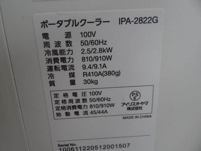 | アイリスオーヤマ ポータブル クーラー 2022年モデル IPA-2822G |