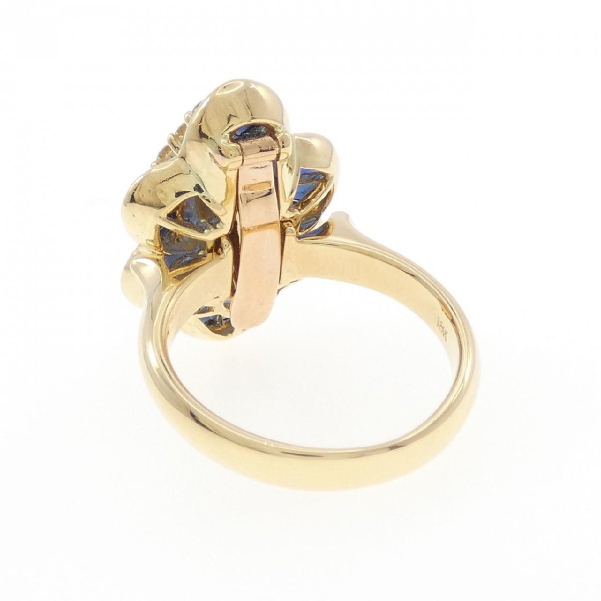 濃密なブルーのサファイヤに煌めくダイヤモンドが目を惹く華やかなリング。モチーフ部分が取り外しでき、ペンダントトップとしてもお楽しみ頂けます。