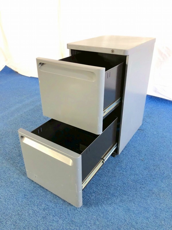 【米軍放出品】ハーマンミラー 引き出し2段 カギ付き オフィスキャビネット スチール製 収納家具 書類整理 (160) ☆BI29IK-W#25