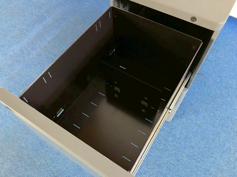 ・ 全体にスチール製ですが引き出し正面はプラスチック素材です。