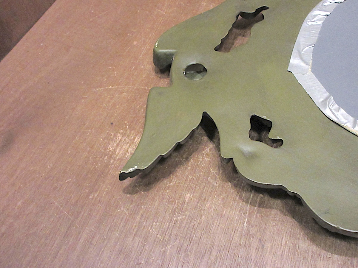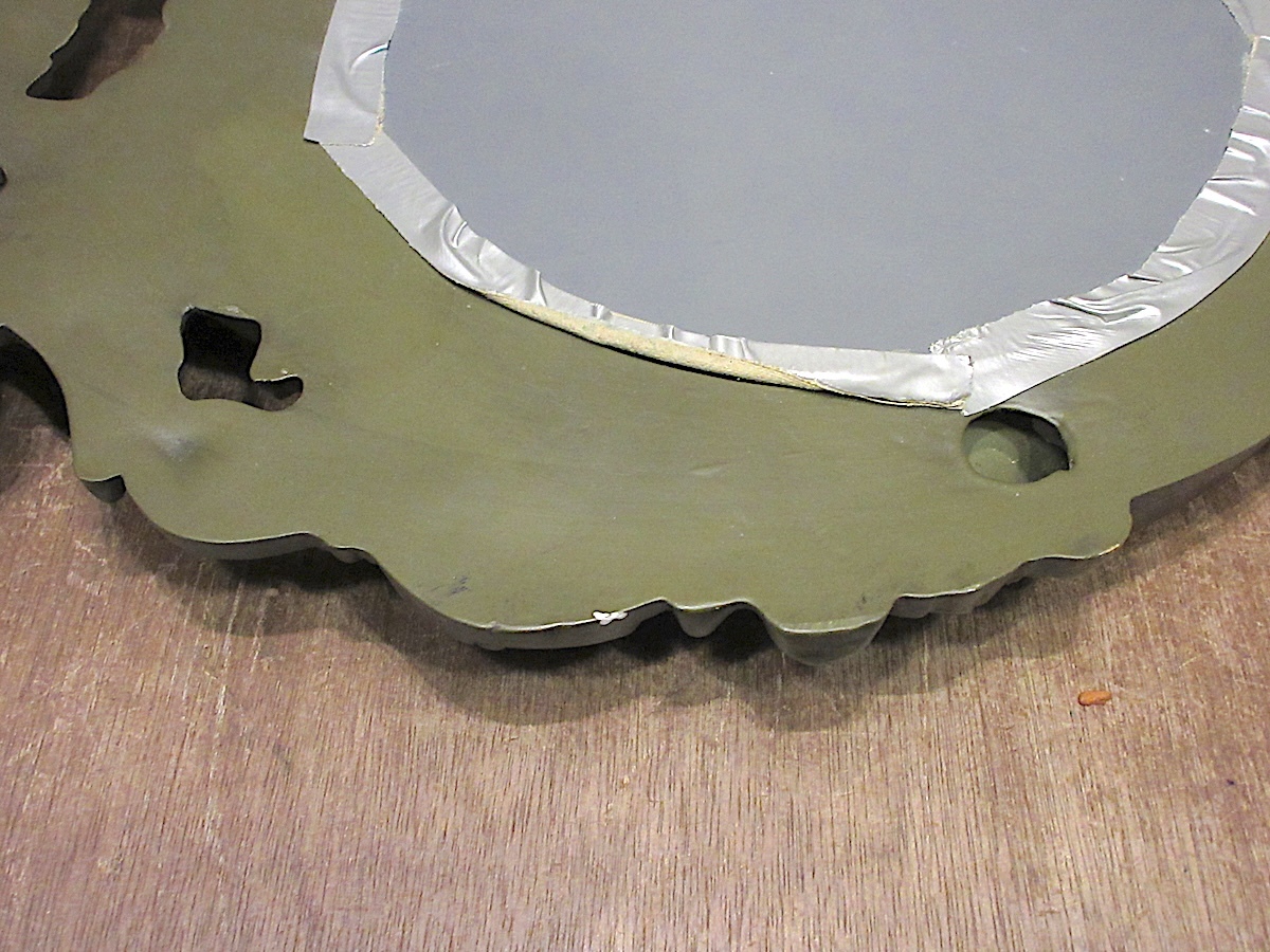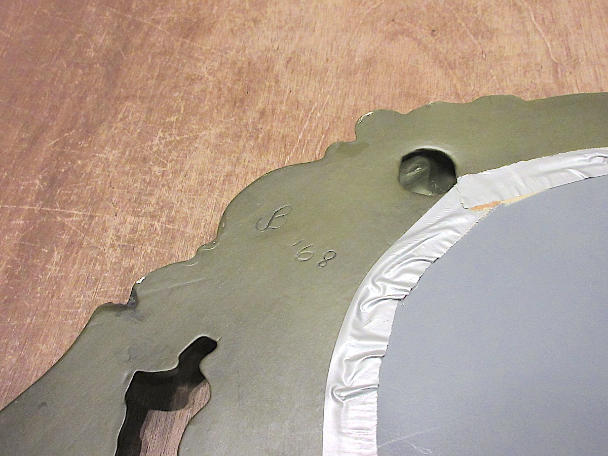 後ろにテープが貼られている状態、所々にスレ、傷、欠け、汚れ