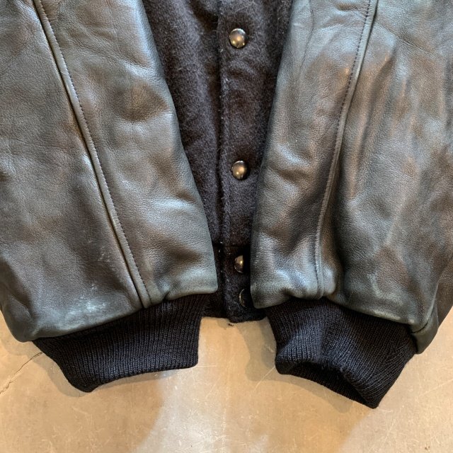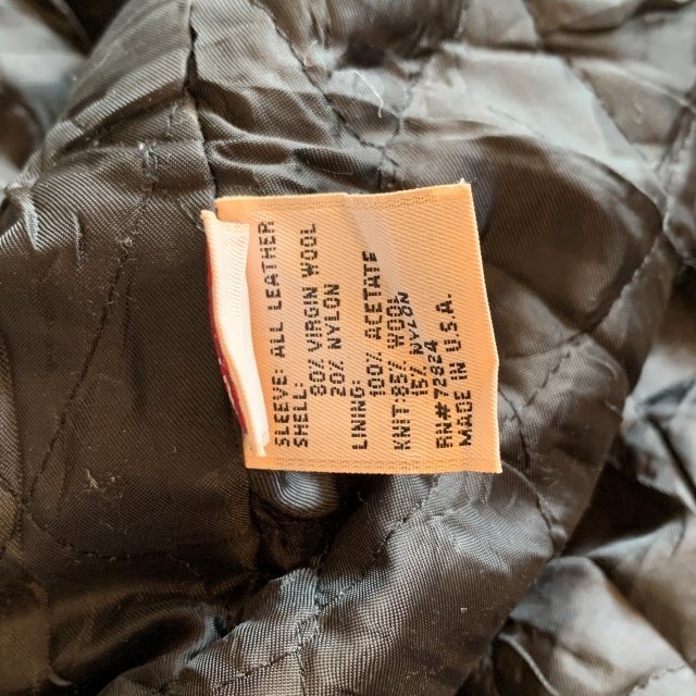 ★商品状態★ ・着用感があり、背面右上部に小穴のダメージリペアが見られます。 ・古着慣れされている方でしたら問題なく着用していただける程度かと思います。 ・MADE IN USA ★素材★ ウール×レザー ★配色★ ブラック ★サイズ表記★ XXL ・実寸を参考にして下さい。 ★実寸サイズ★ 肩幅 58㎝ 身幅 70㎝(脇下~脇下) 着丈前66㎝(襟下~裾) 着丈後62㎝ 袖丈 66㎝(肩~袖先) ・平置きにての採寸となります。 ・若干の誤差はご了承ください。 |