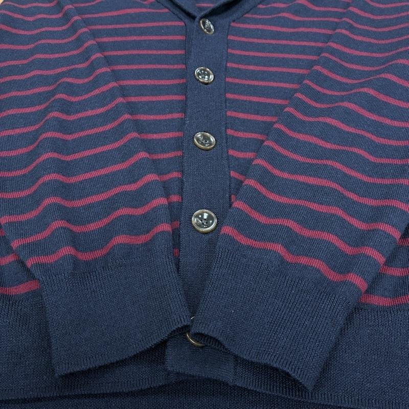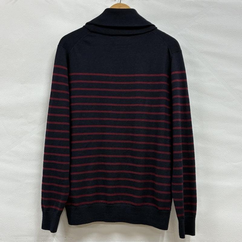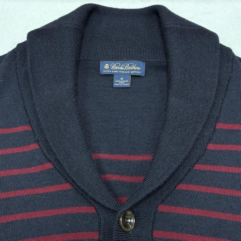 ブルックス ブラザーズ ウール ボーダー ショールカラー Vネック ニット カーディガン M