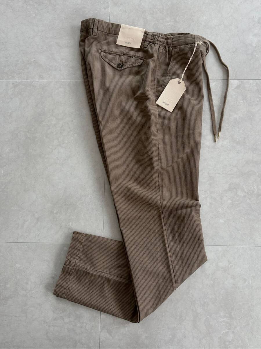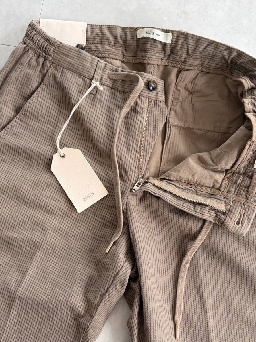 イタリアブランド「BRIGLIA(ブリリア)」は、上質な素材と計算されたシルエットを融合させたパンツ作りで知られ、国内外のファッショニスタから高い評価を得ています。クラシックな美意識を持ちつつ、現代のライフスタイルに寄り添った快適な着心地を提供することがブランドの特徴です。 本作は、通年使用可能なリラックスパンツ。 素材は通気性と耐久性を兼ね備え、春夏は涼しく、秋冬はインナー次第で快適に着用できる万能設計です。ウエストはドローコード仕様で調整が自在なため、リラックス感のある着用感を維持しつつ、シルエットをすっきり整えることができます。日常使いからワンマイルコーディネートまで、幅広いシーンで活躍します。 リラックスフィットのシルエットは、腿周りに余裕を持たせつつ裾にかけて自然に細くなる美しいラインを描きます。ジャケットやシャツと合わせればモダンなカジュアルスタイルに、ニットやパーカーと合わせればリラックス感のある休日スタイルに仕上がります。軽量で動きやすく、ストレスフリーな着心地を実現しているのも特徴です。 BRIGLIAならではの上質な素材感と、さりげないデザインディテールが光る一着。 シンプルでありながら大人の品格を感じさせ、通年通してワードローブの軸として活躍するパンツです。リラックススタイルと上品さを両立させ、着る人の存在感を自然に引き立てる逸品となっています。 ブランド:BRIGLIA 1949 / ブリリア 1949 素材:コットン63% リネン35% ポリウレタン2% サイズ:50/34 ウエスト:78-88cm 股上:25cm 股下:77cm 渡り幅:31cm 裾幅:16cm ※迅速なお取引を心がけさせていただいております。オークション終了より24時間以内にご連絡をいただけない場合、土日祝日を除き48時間以内にお支払い手続きをいただけない場合は、お取引の意思なしと判断させていただき取引キャンセルとさせていただきます。 万が一上記が不可の場合は事前にご連絡いただくか、入札をお控えいただきますようお願い申し上げます。 ※なるべく現物に近いお色味で撮影するよう心掛けておりますが、閲覧環境の違い等によって違いが出る場合があります。 差し替えトラブルを避ける意味でも上述した旨含め、イメージと違う等での返品は受け付けておりません。 百貨店並みのサービスを求める方や神経質な方の入札はお控えいただきますようお願い申し上げます。 また、差替えやSNS使用後の返品等を防止するためためにも、原則返品には応じられません。 疑問点や心配事等がある場合は入札前に質問欄にてお問い合わせください。 ※当方が出品するすべての商品は間違いなく本物ブランド品となりますので、安心してオークションにご参加ください。 万が一、第三者等により偽物と判断された場合、商品の返品、お支払いただきました全額を返金をいたします。 |