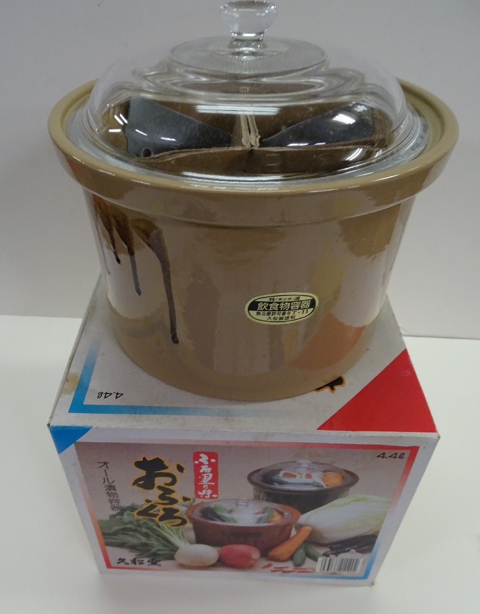 品名: 漬物容器・ふる里の味おふくろ・ 素材: 陶器 ・メイカー: 久松窯謹製 ・NO-R6-12-5.8