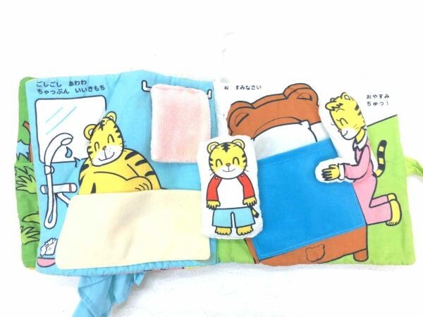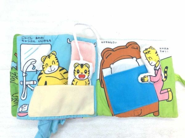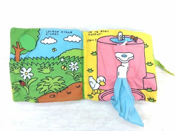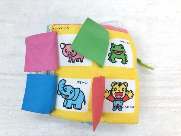 しましまとらのしまじろう こどもチャレンジ トントン ケロケロ パオーン 動物 かくれんぼ 仕掛け おもちゃ 知育 布絵本 キッズ カラフルです。