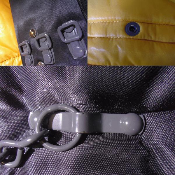 ・メイン収納のガーメント部分は、カニカンのフック4つの開閉式になっており、他のタンカーのデザインにはないアクセントにもなっています。