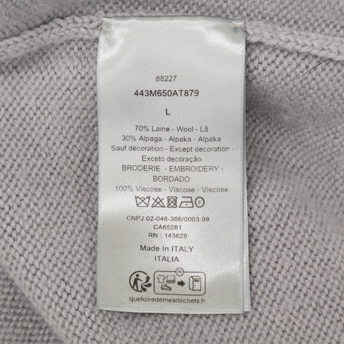 商品名 ディオール グレー ウール×アルパカ ニットトップス