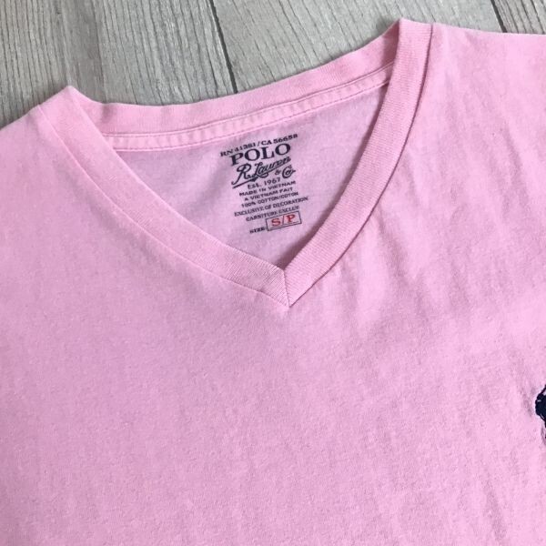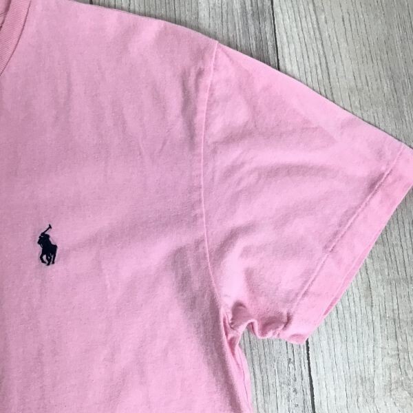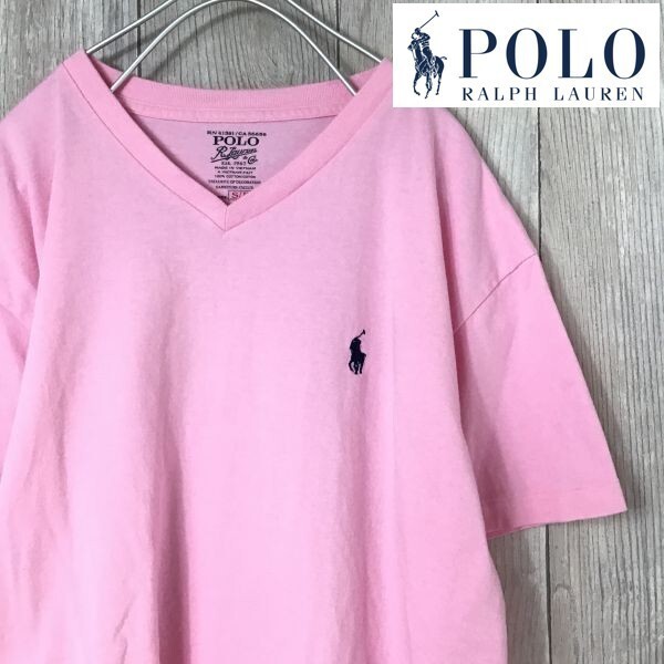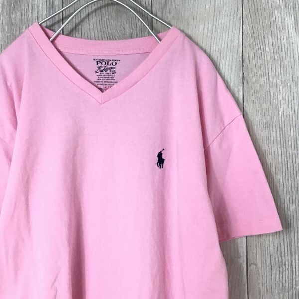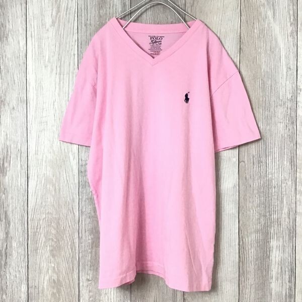 ★USA古着★良品&正規品★【Polo Ralph Lauren ラルフローレン】Vネック 刺繍ポニー 半袖 Tシャツ【海外規格大きめ S/P】ピンク K-801
