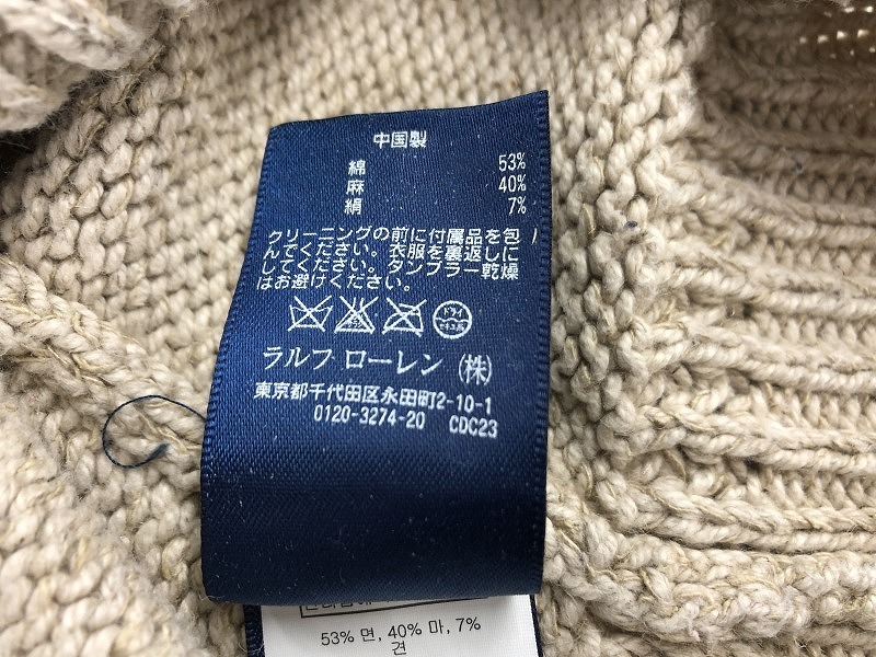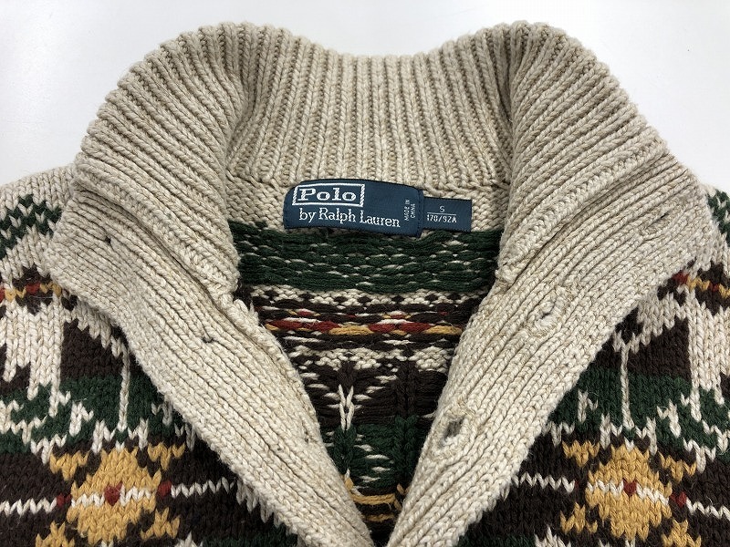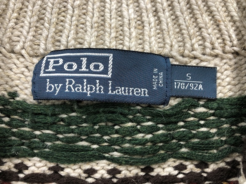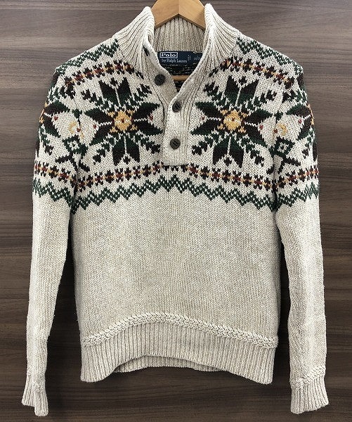 ポロラルフローレン POLO RALPH LAUREN ハーフボタン ケーブルニット メンズ Sサイズ アイボリー 総柄