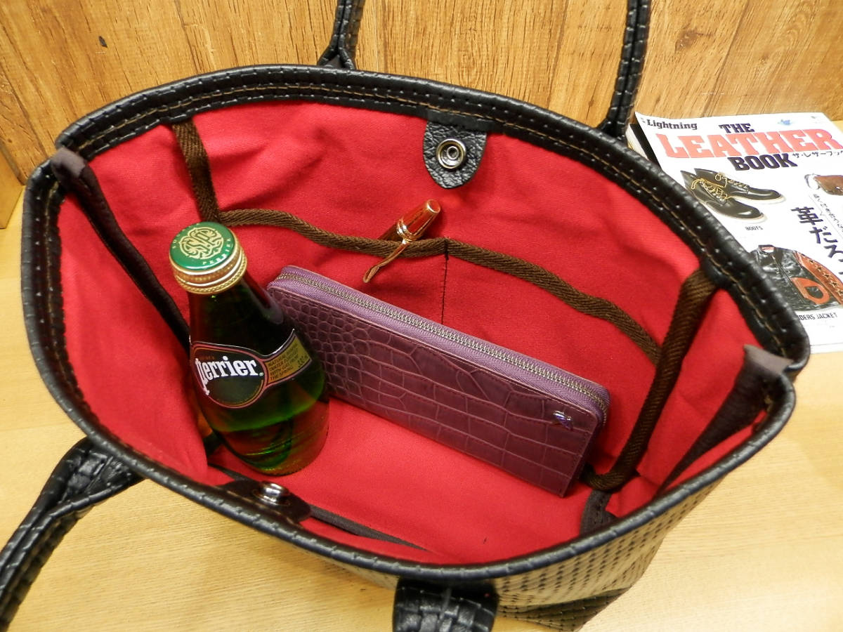 ブラックのレザーに鮮やかなレッドの裏地が目を引きます♪