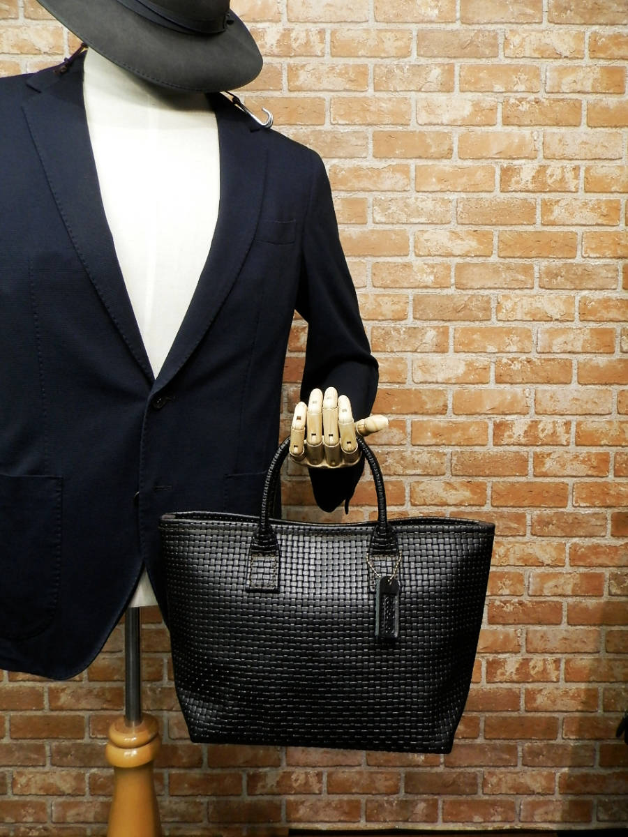 上品なメッシュ型押しレザーのミニトートバッグです。