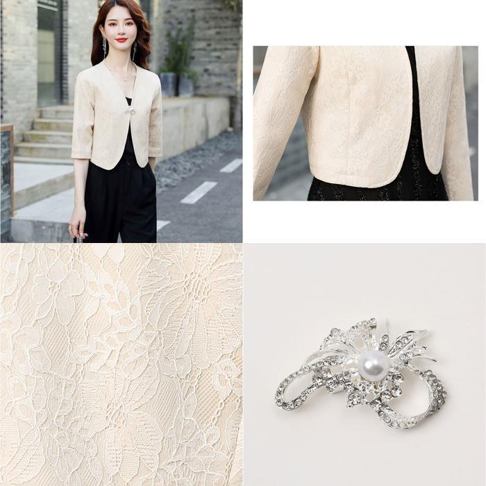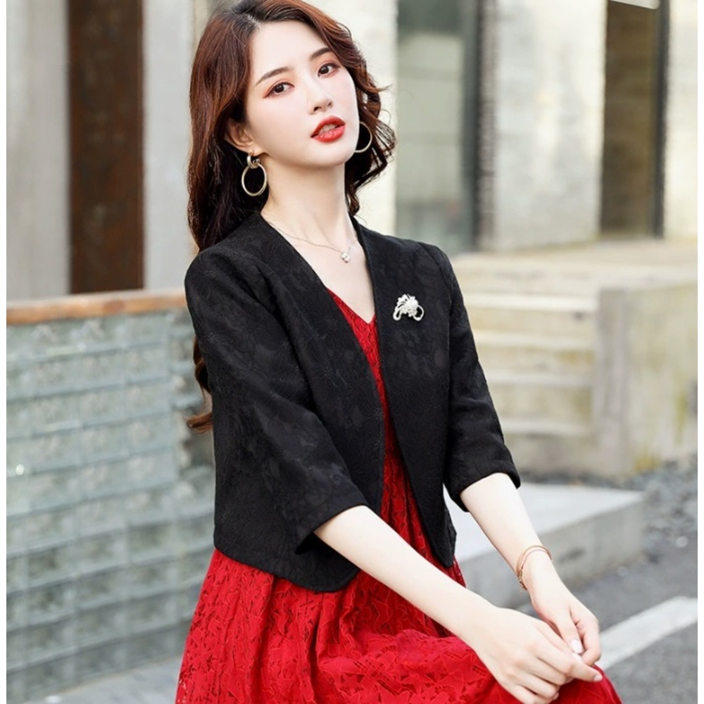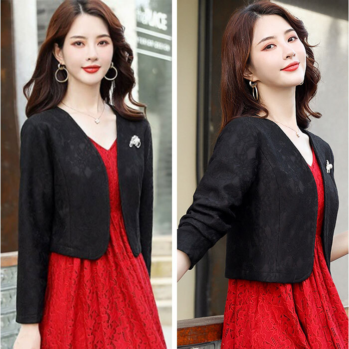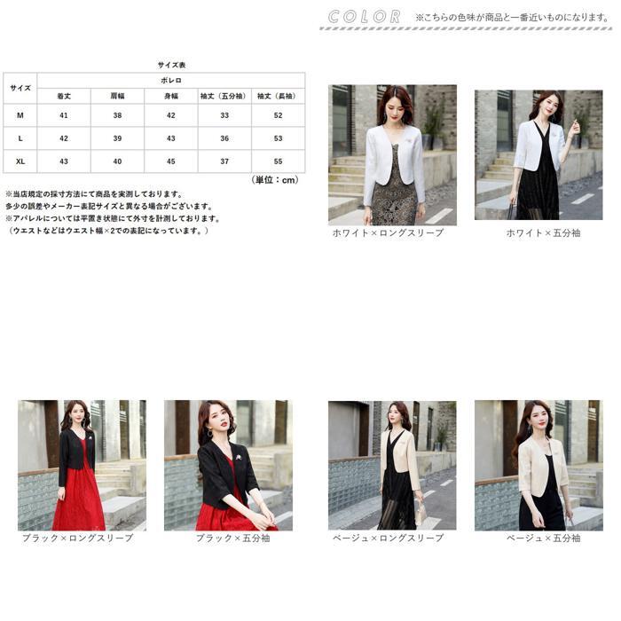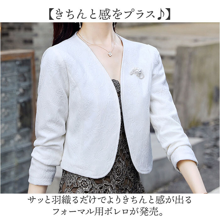 商品説明 | ・・【きちんと感をプラス♪】 ・サッと羽織るだけでよりきちんと感が出るフォーマル用ボレロが発売。 ・【手持ちのドレスやワンピースに】 ・ドレスやワンピースにプラスワン♪より華やかな雰囲気を演出できるのも嬉しいポイント。 ・【季節やお好みに合わせて選べる】 ・・5分袖、長袖のタイプをご用意。露出を抑えつつ、季節やお好みに合わせて選べる。 ・【大人上品なレース素材】 ・派手過ぎずないレース総柄なデザインで、大人上品な仕上がりに。 ・【サッと羽織れて着脱がスムーズ】 ・ボタンなどがなく、ワンピースやドレスの上に羽織るだけでOK。 ・【軽やかな着心地でノンストレス】 ・さらりと軽い生地感。肌寒い時もすぐにプラスできるのが嬉しい! ・【華やかさが上がるバッチ付き】 ・パール風ビジューとラインストーンをあしらったバッチ付き。きらりと輝くアクセントに。 |