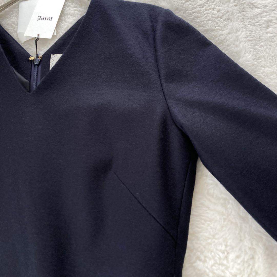 行事ごとにも使える綺麗目ワンピースです。ウール100%で七分袖で丈はひざ下くらい。ヒールでもブーツにも合います。未使用品タグ付きです☆