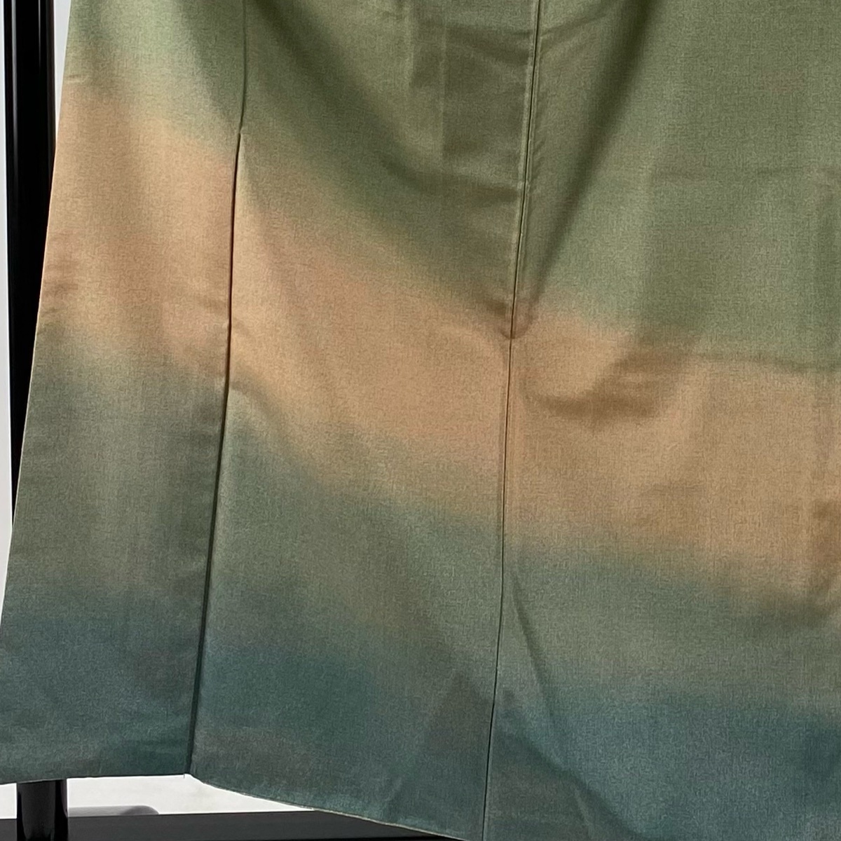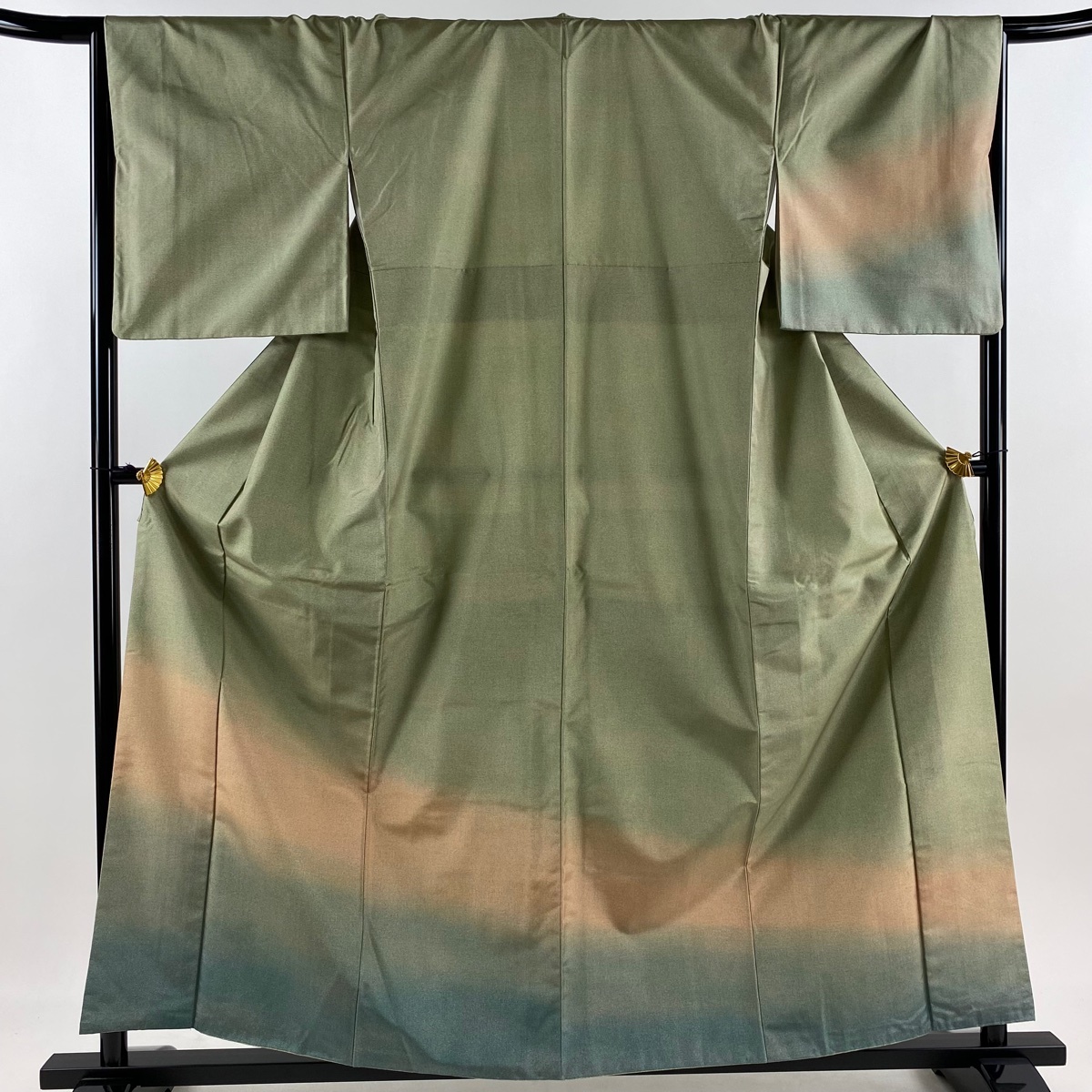 | 付下げ 美品 秀品 紬地 霞 ぼかし 灰緑 袷 身丈160 裄丈67 M 正絹 【中古】 |