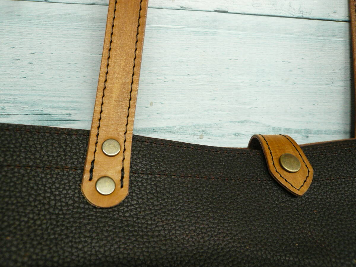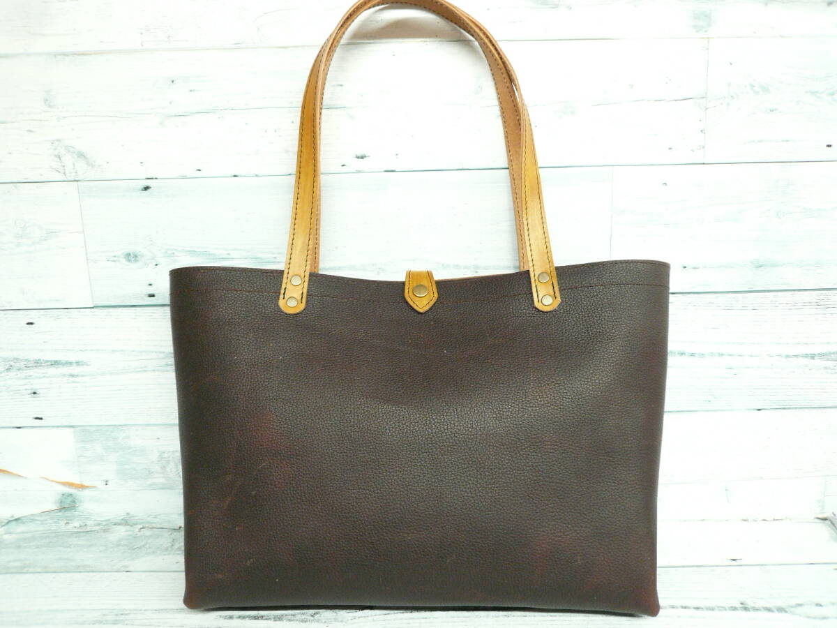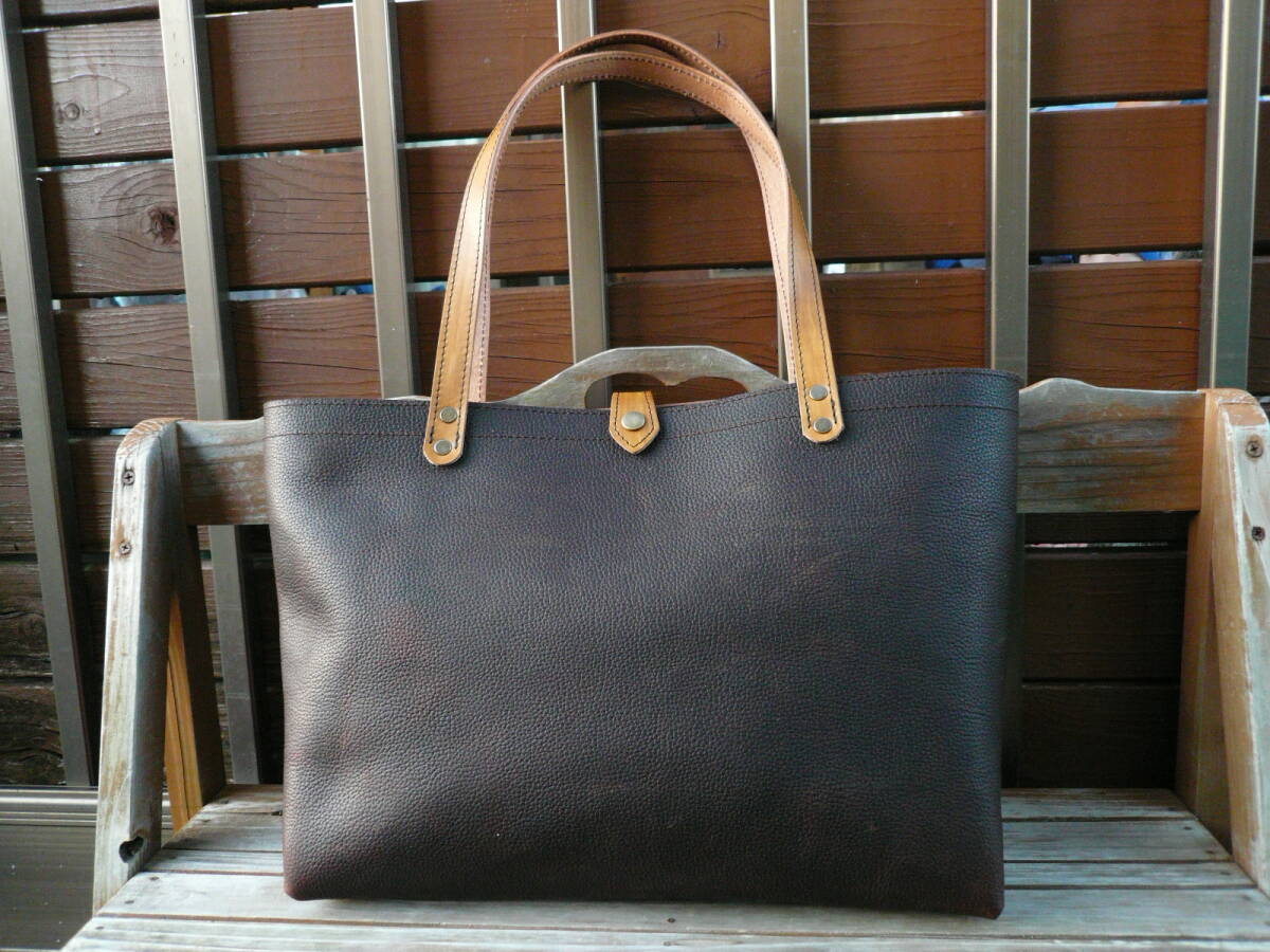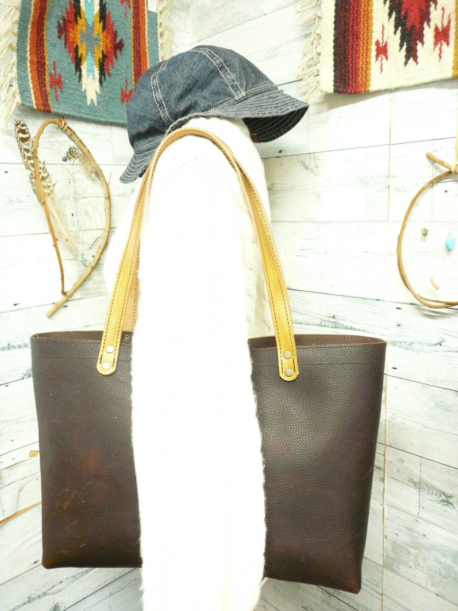 【牛革トートバッグ!プルアップレザー シュリンク オイル】ダークブラウン ゆったり肩掛けバッグ ハンドルヌメ革 435
