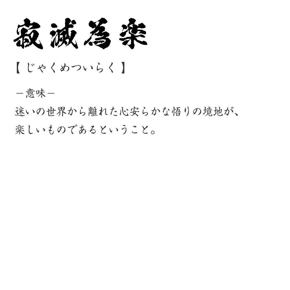 寂滅為楽 ( じゃくめついらく ) 書道家が書く デザイン Tシャツ 【 四文字熟語 】 メンズ レディース キッズ