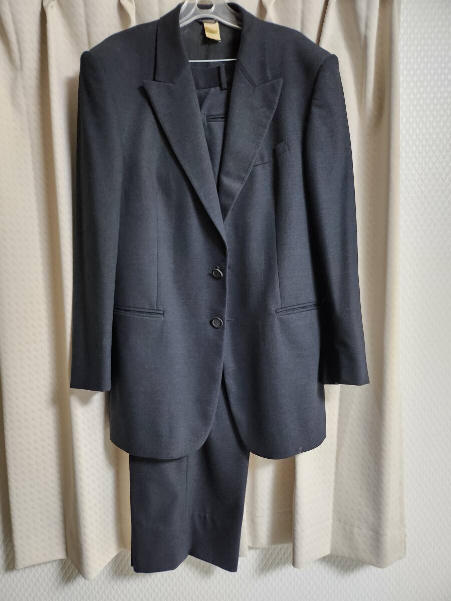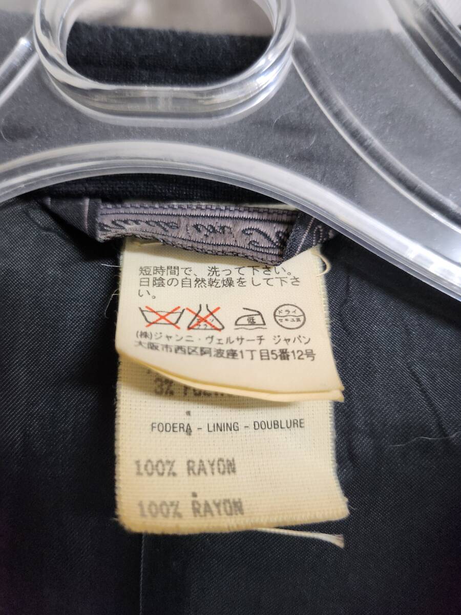 ◎GIANNI VERSACE ジャンニヴェルサーチェ スーツ セットアップ 黒 ブラック ストライプ ウール 裏地 メデューサ