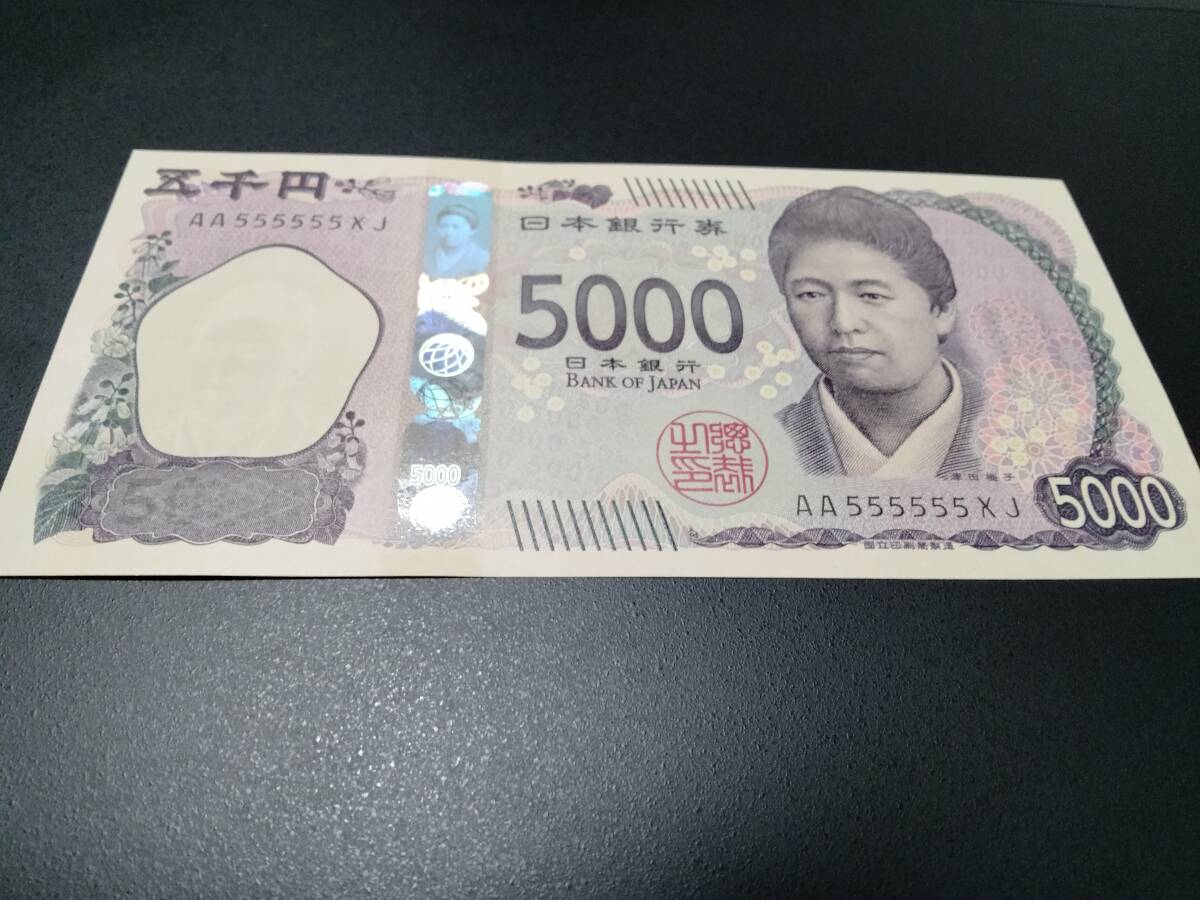 AA555555XJ ゾロ目 ピン札新五千円