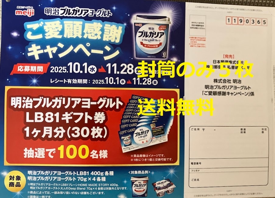 【懸賞応募封筒のみ5枚】明治ブルガリアヨーグルト ご愛顧感謝キャンペーン 数量:3★送料無料