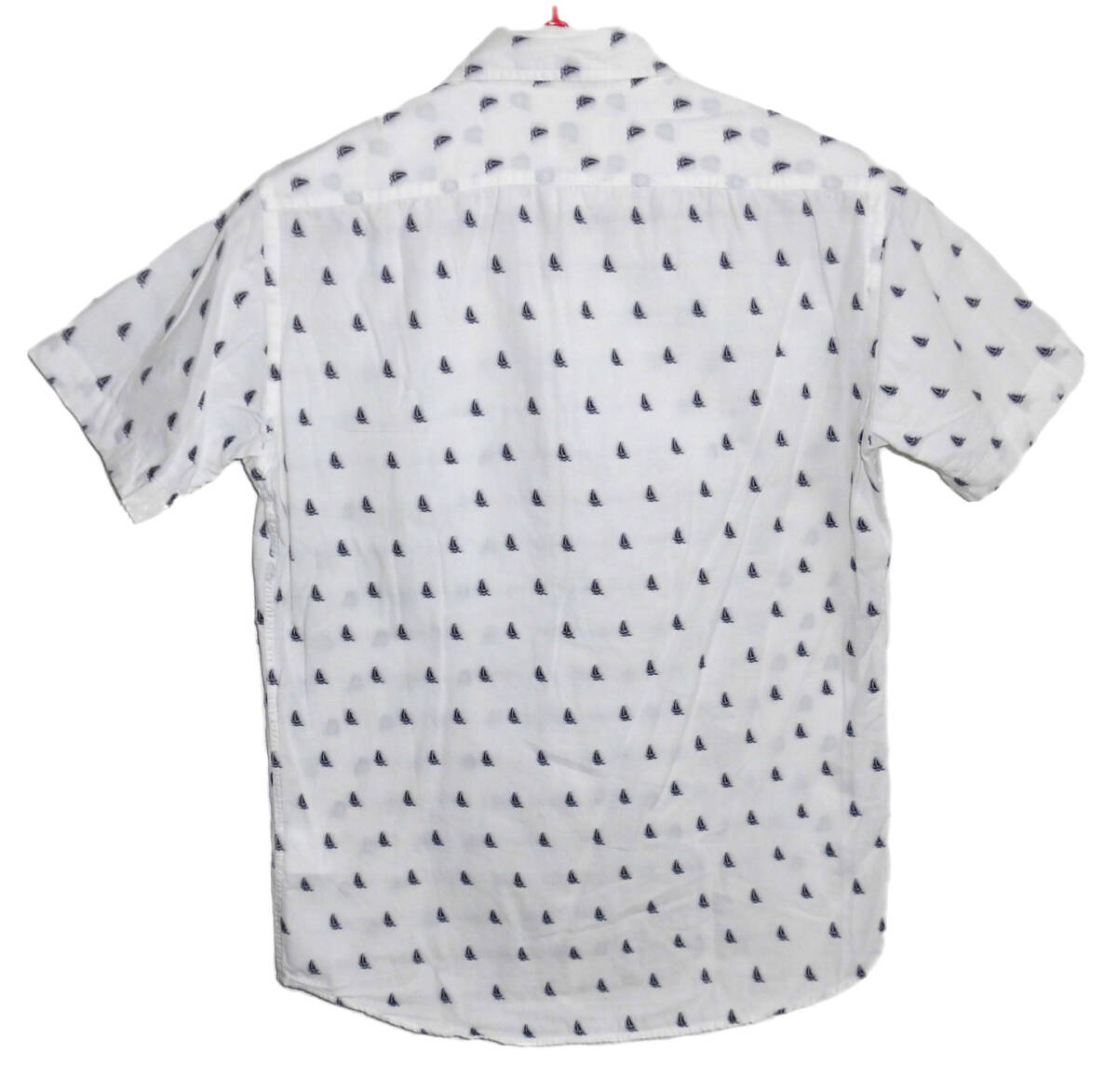 こちらはマリンテイストな雰囲気のヨットの刺繍の総柄が目を引く半袖シャツです。
