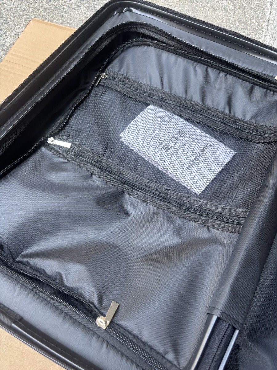 当然通常のスーツケースのように真ん中で開いて荷物を入れる事も可能です。