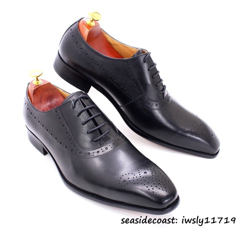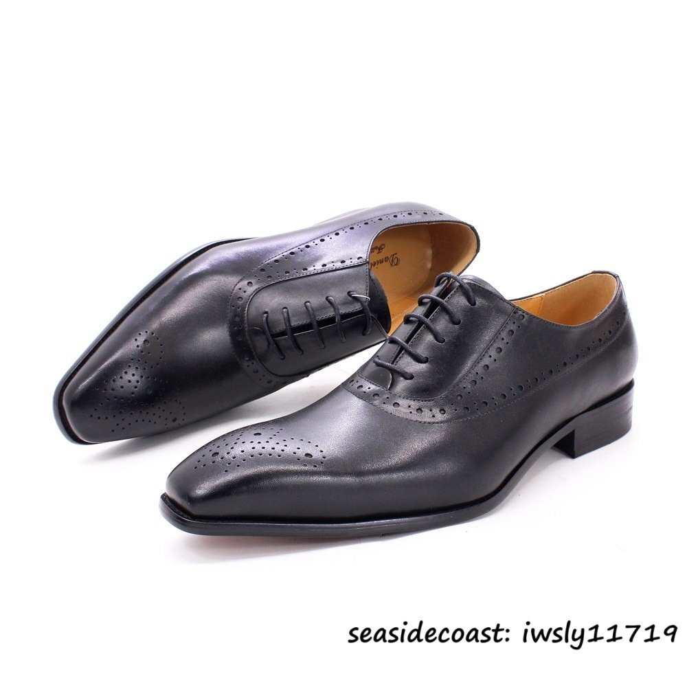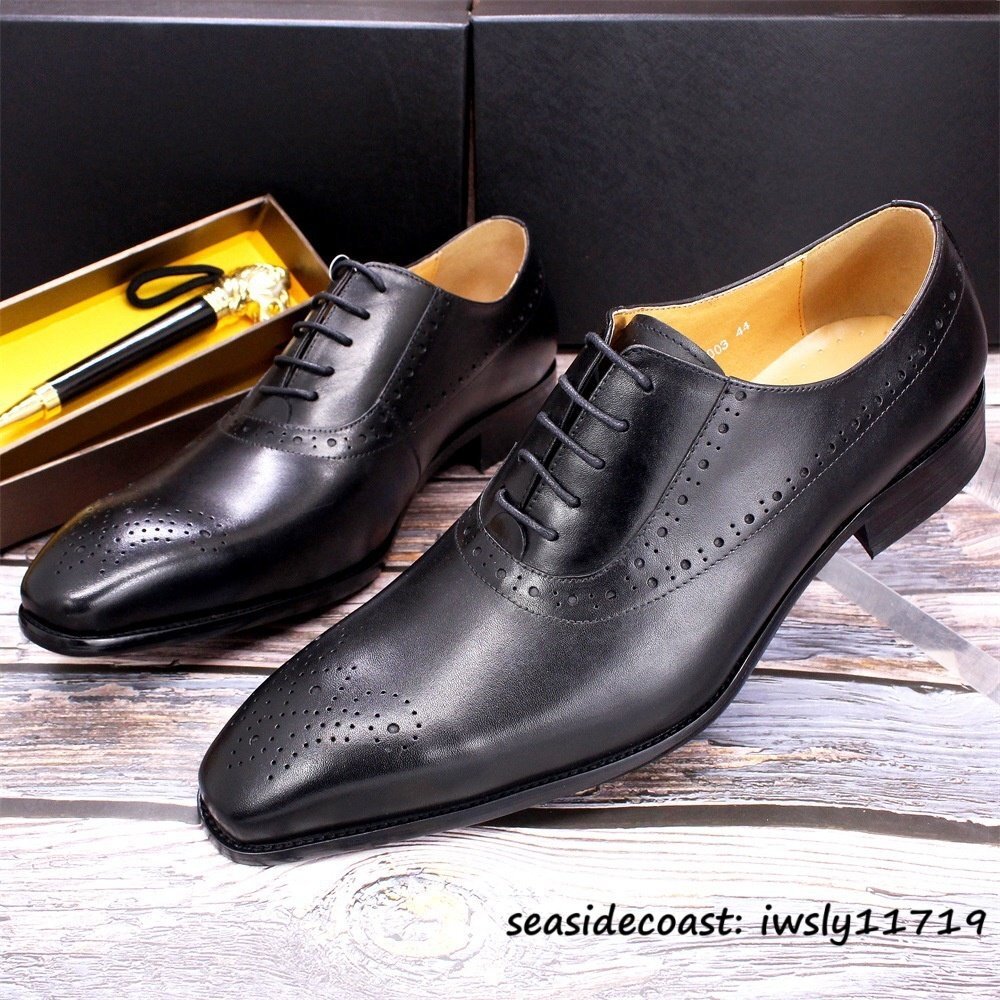定価10万◆最高級 本革 ビジネスシューズ 牛革 レザーシューズ 職人手作り 彫り 新品 紳士靴 革靴 イギリス風 フォーマル ブラック 24.5cm