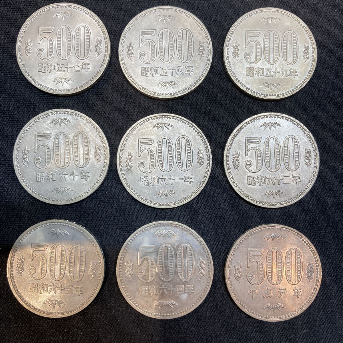 (a) 500円硬貨 9枚 昭和57-昭和64 令和元年 NIPPON 500