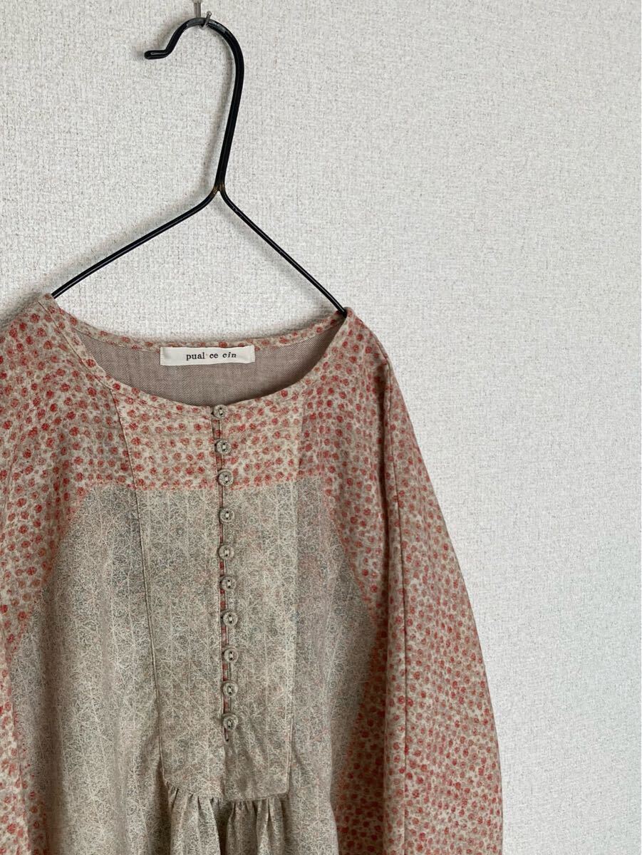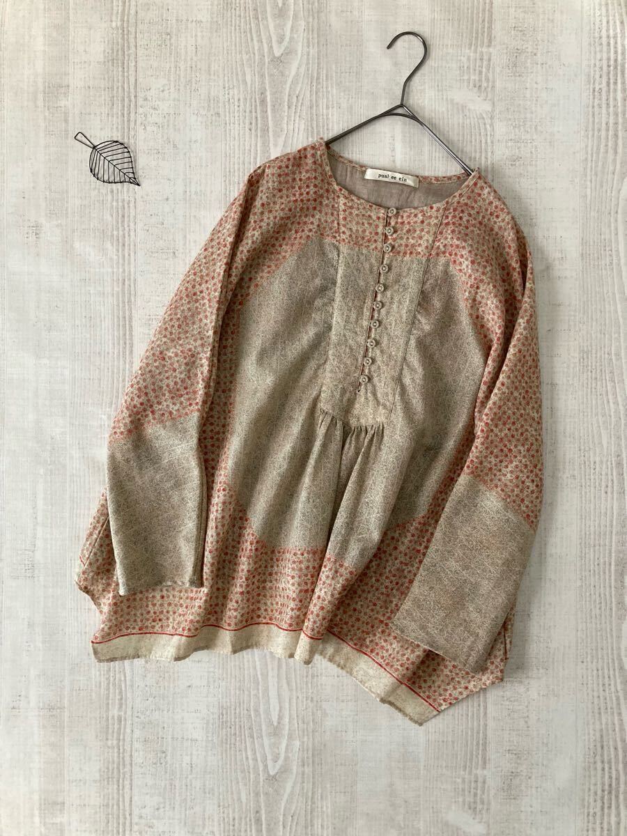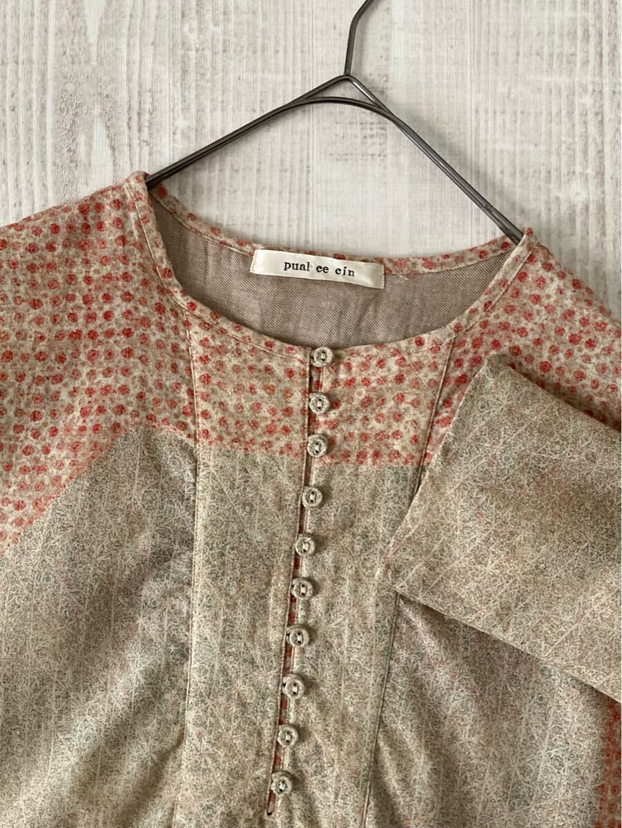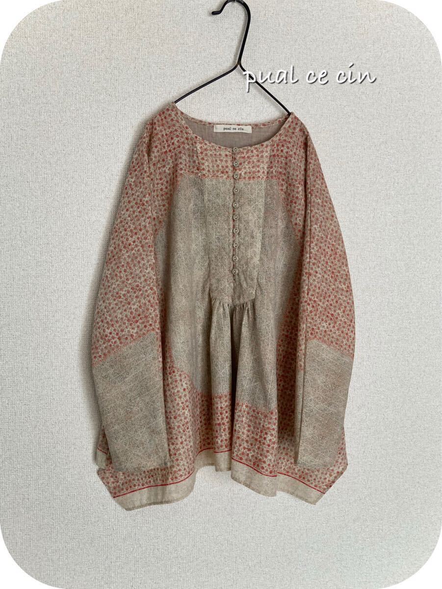 *pual ce cin*ピュアルセシン*バックレイヤード パッチワーク風プリント トップス*