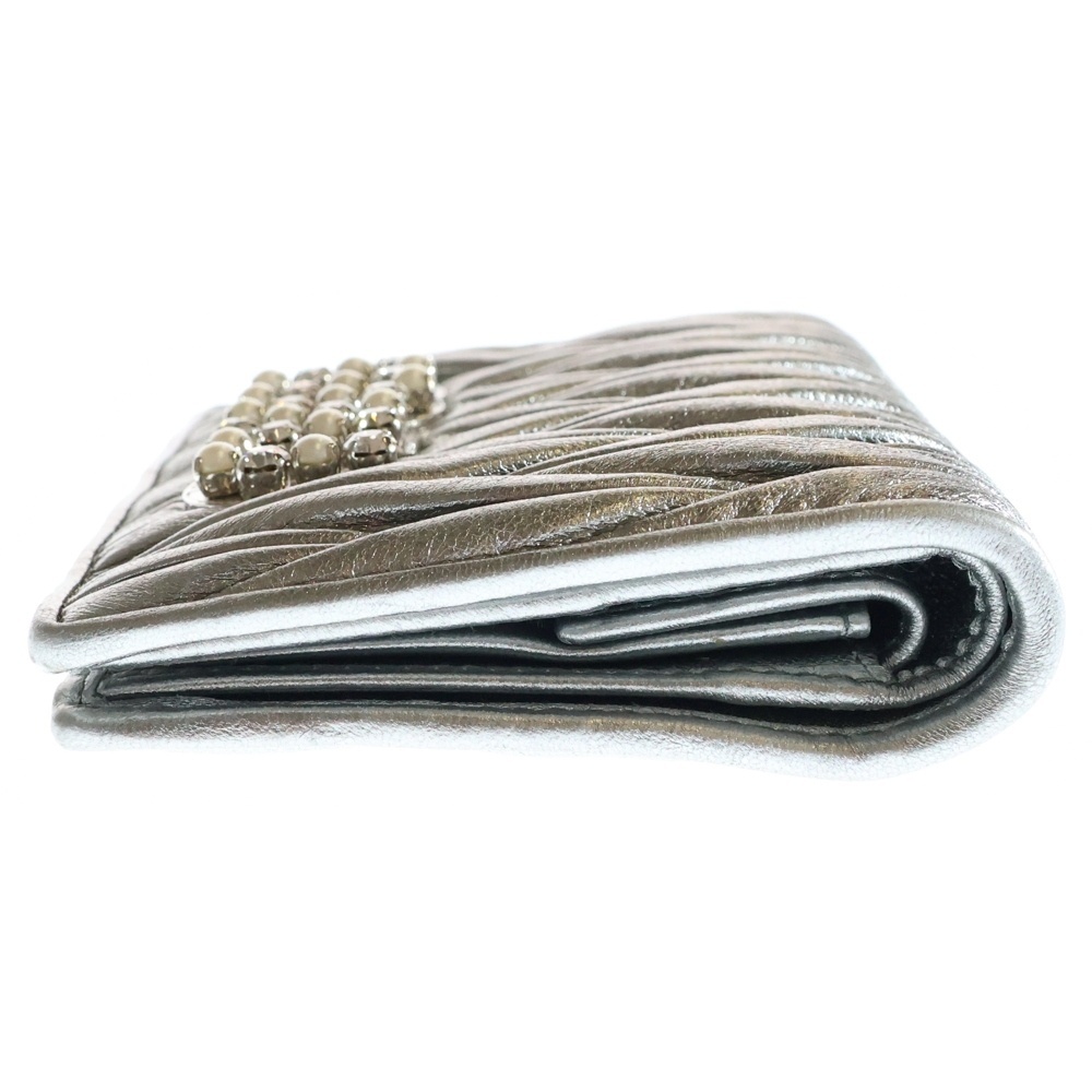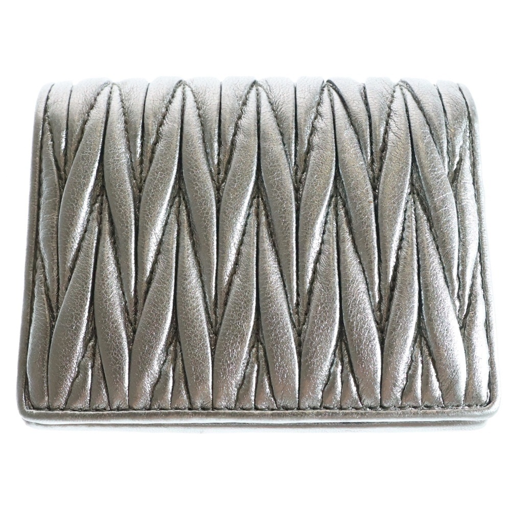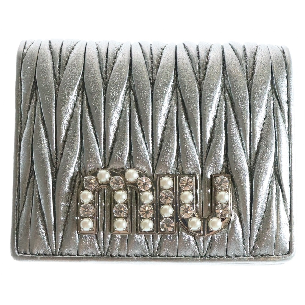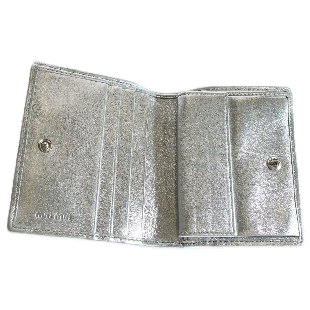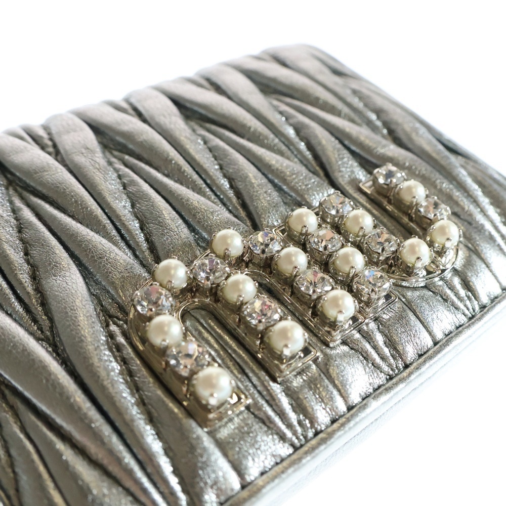 miumiu ミュウミュウ マテラッセ ビジュー クリスタル 二つ折り財布 コンパクトウォレット コインケース メタリック シルバー レザー