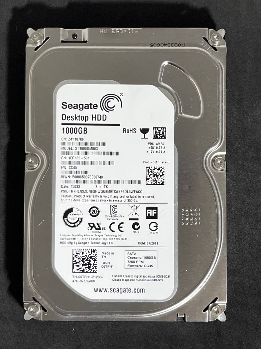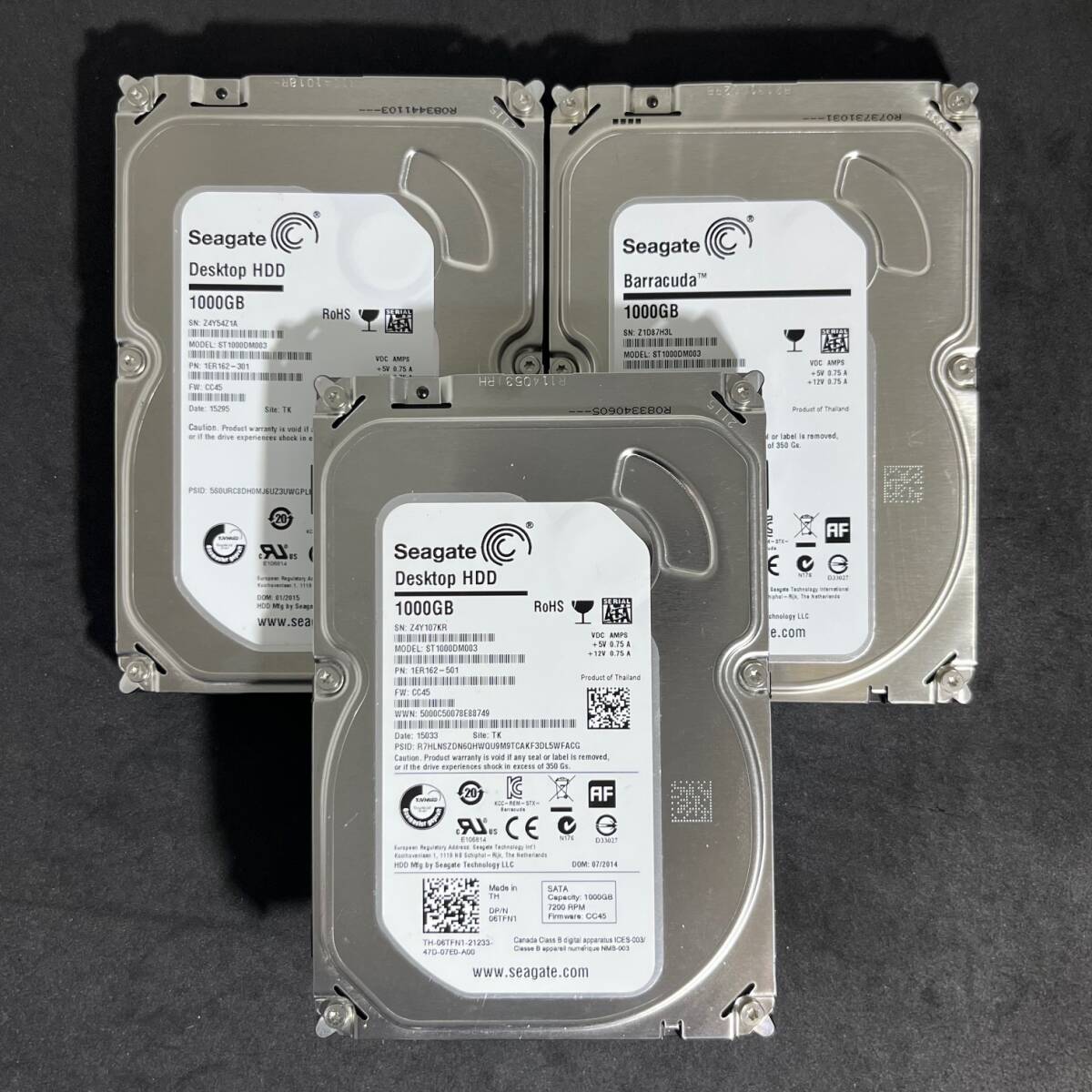 ★ 3個セット ★ 1TB ★ ST1000DM003 / Seagate 新品同様 薄型タイプ 3.5インチ 内蔵 HDD SATA 1000GB 合計3TB/3000GB 3台まとめ