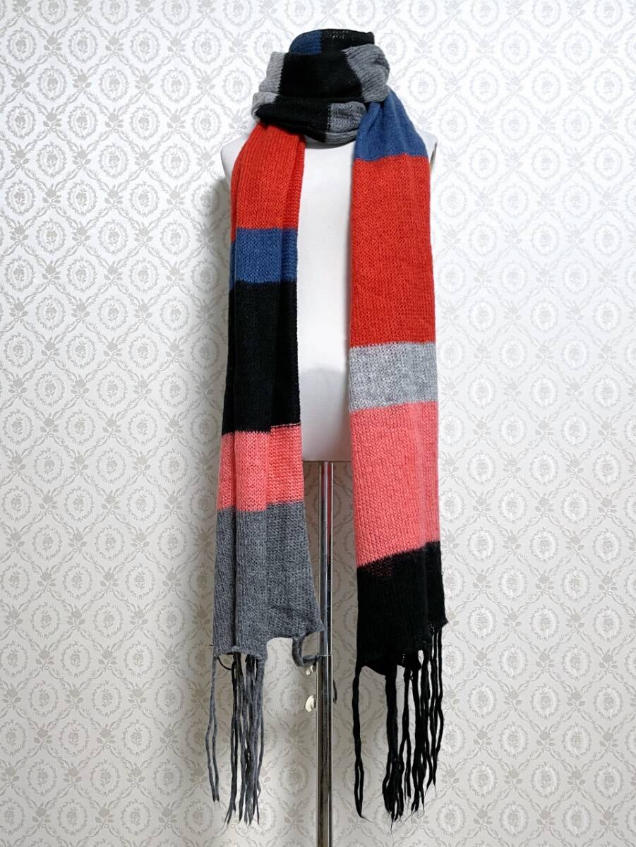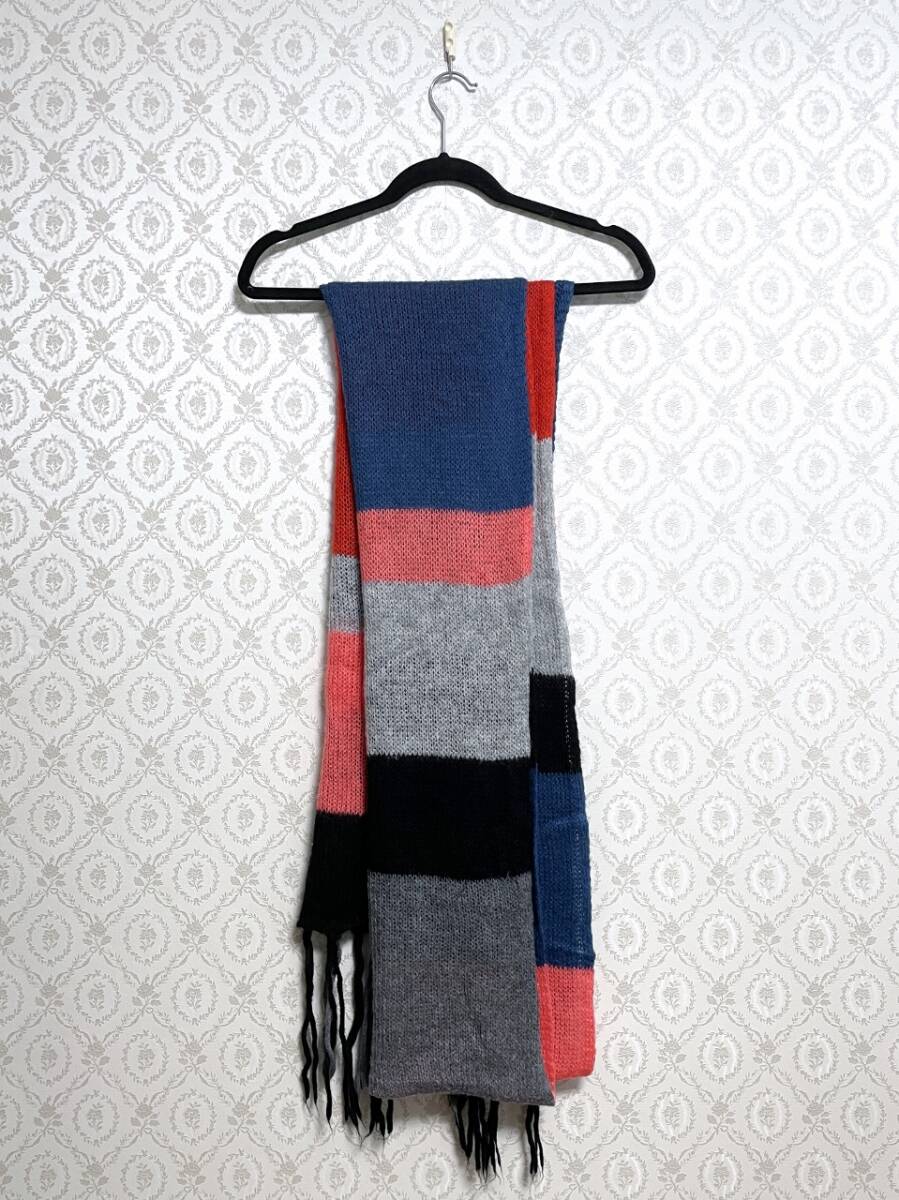 H&M エイチアンドエム マフラー カラフル レッド ブルー ブラック グレー
