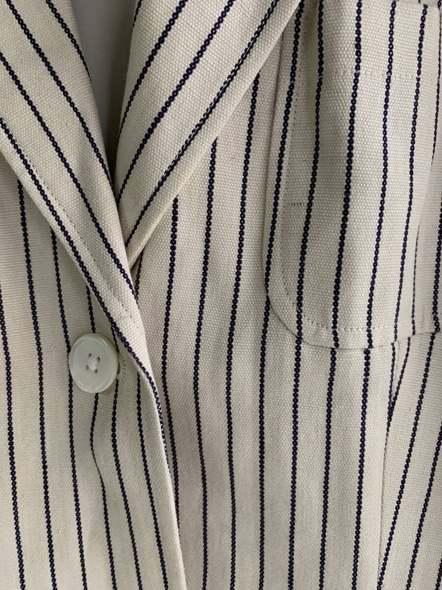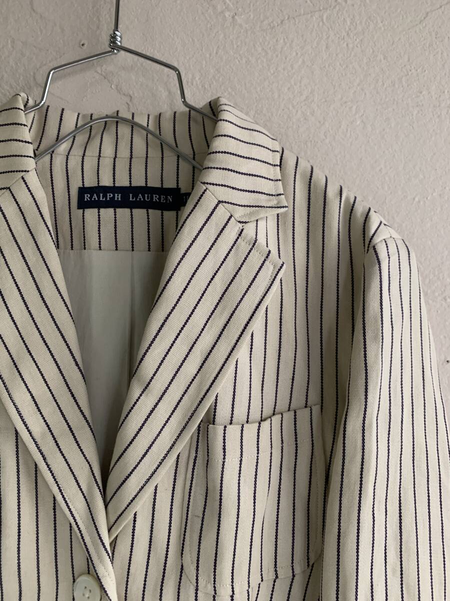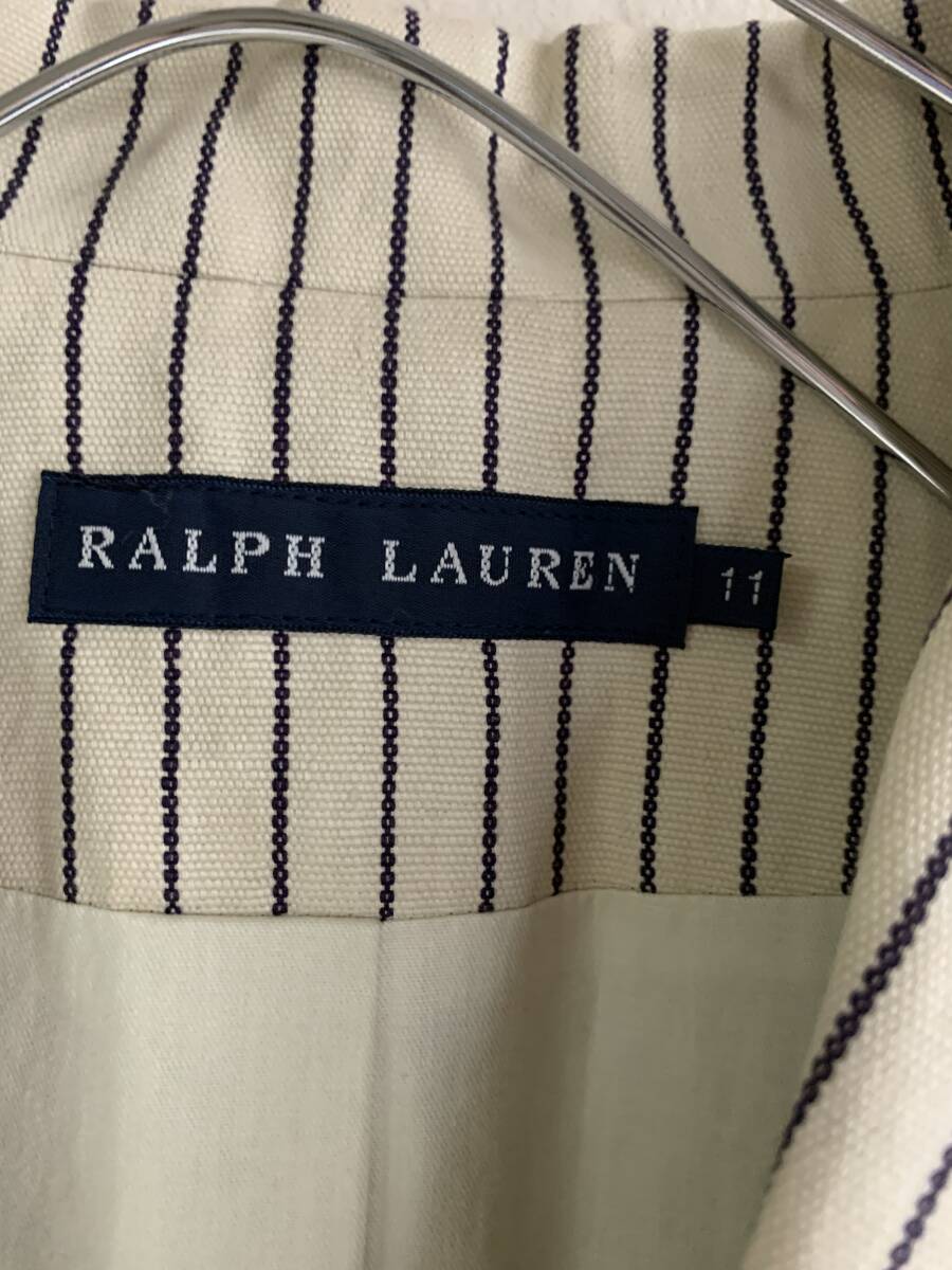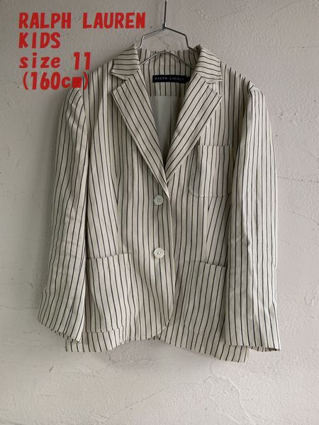 ◆O05◆RALPH LAUREN ラルフローレン ピンストライプ柄 綿100% テーラードジャケット アイボリー/ネイビー キッズサイズ11(160㎝)
