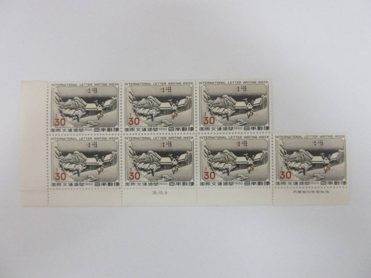 切手 / 国際文通週間 1960 蒲原(安藤広重) 30円 7枚ブロック / 未使用