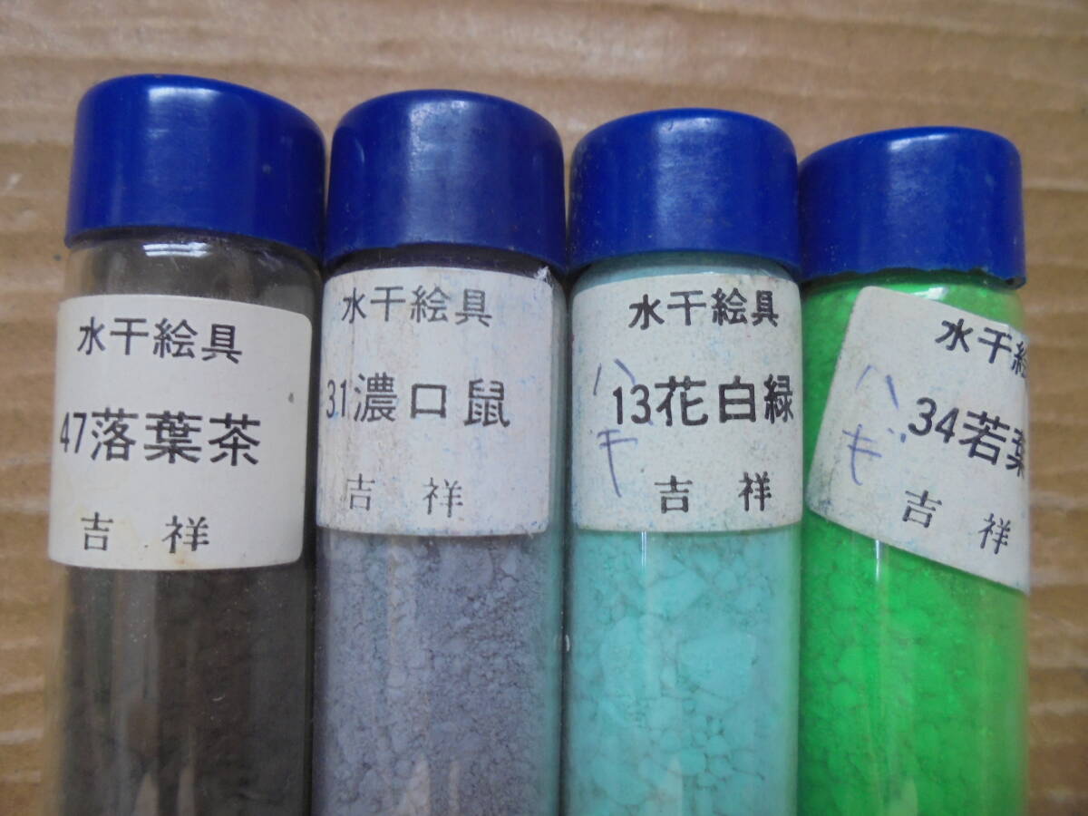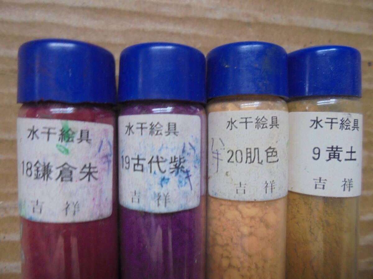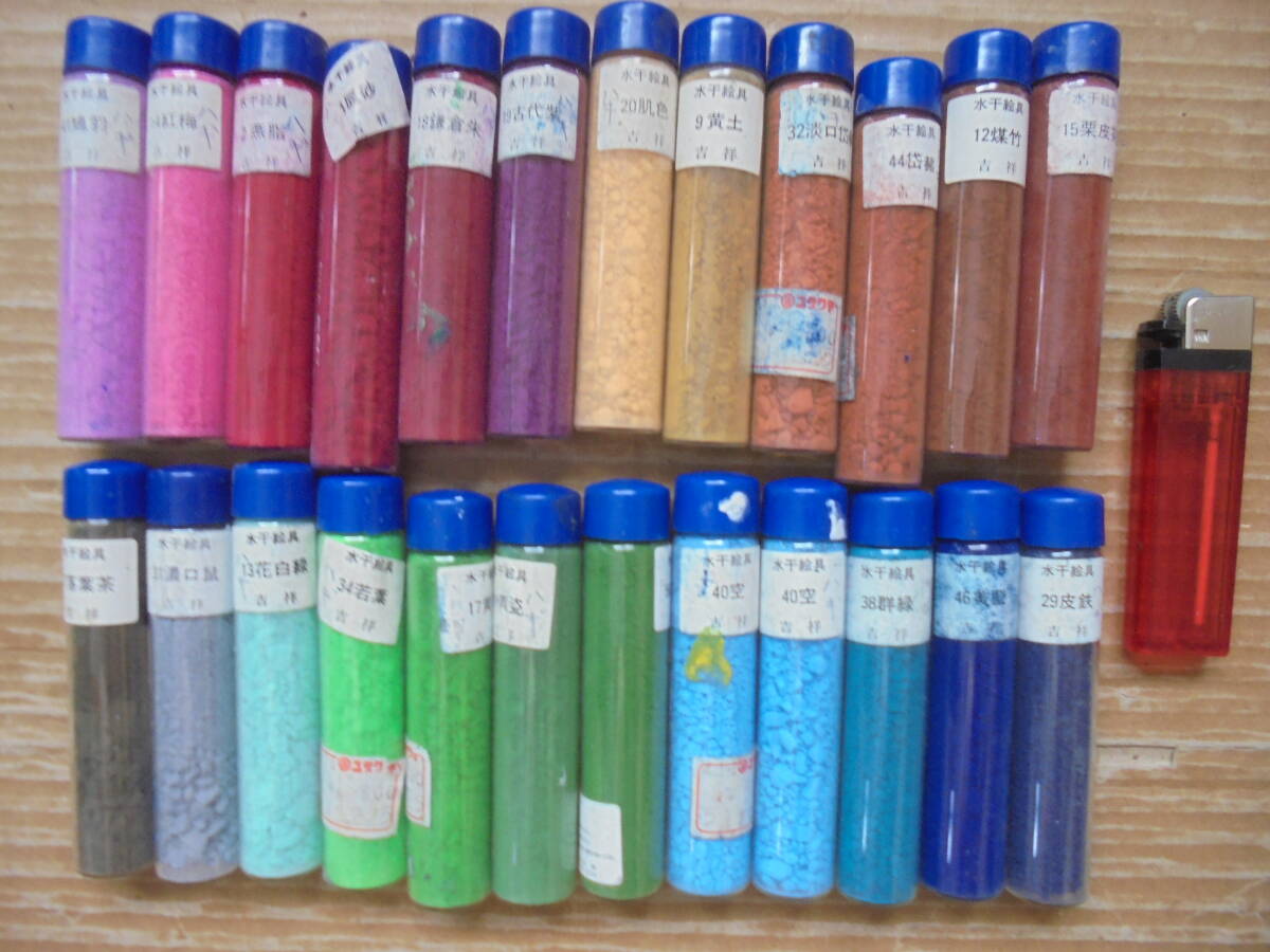吉祥の水干絵の具24本です。レトロ品ですが2本以外は全てビンの上口まで詰まっています。ビンは径2㎝、高さ9㎝程度あります。 ◎ 当品の送料はコンパクトサイズで、「ヤフ-指定おてがる配送のクロネコ割引価格」と同料金です(送料は落札者負担で匿名配送不可です)。定形外が可能な商品は、当方が取引ナビにてご提案させていただきます。 ◎当方の出品商品は、今後の落札の有無にかかわらず、7日間程度の取り置き(同梱包)をお伺いいたしますので、取引ナビに「取置希望」を明記していただければ、取り置きを歓迎しますのでごゆっくりどうぞ。なおヤフ-システムではかんたん決済利用は落札後5日以内となっており、それ以降は銀行振り込みとなり詳細は落札後ご案内します、簡明のため落札毎のかんたん決済も歓迎します。 ◎また商品の作者が明記され真作・肉筆と記載している場合、真作・肉筆が疑われる根拠がありましたら返品・返金します。 ◎なお当方が入手した個人情報は、この取引以外には使用しない、他の商品等のダイレクトメ-ルをしない、取引完了1ヶ月後には全ての個人情報を消去する事を厳守いたします。