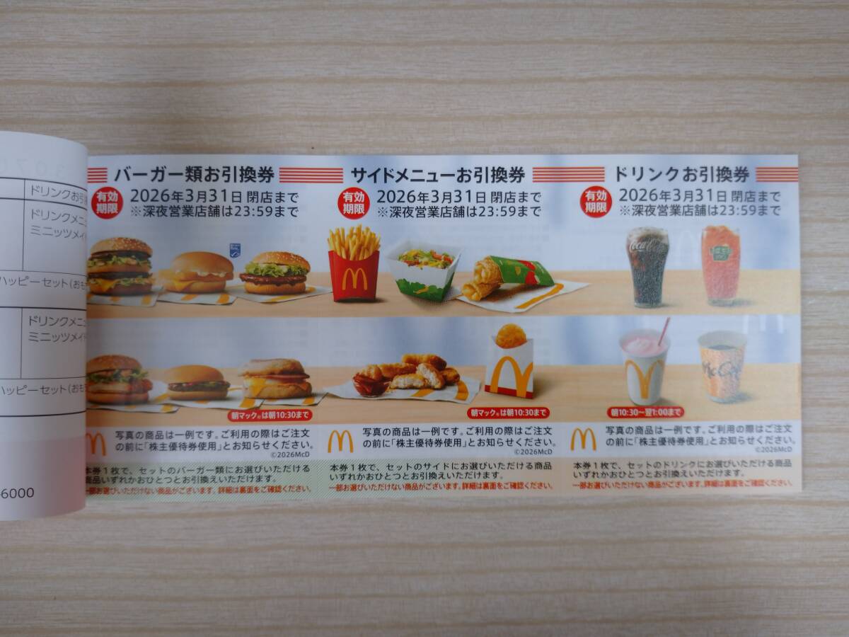 D マクドナルド 株主優待券 6枚綴り 2冊 R8.3.31まで