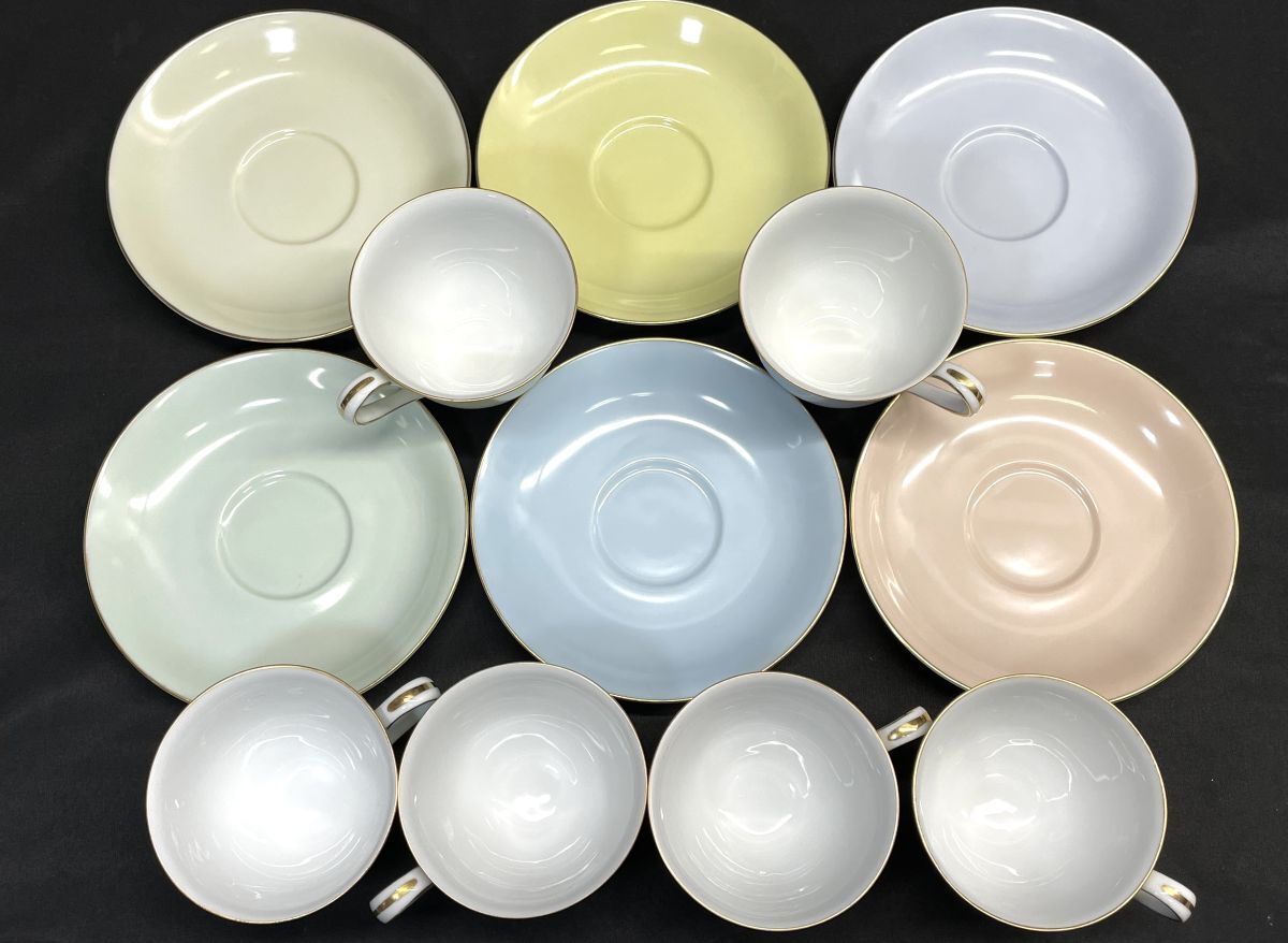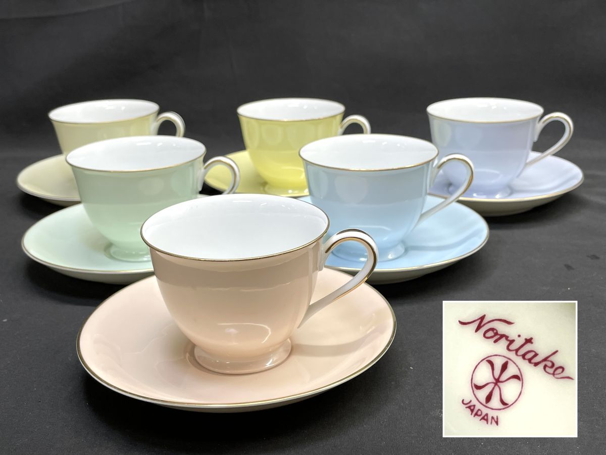 | 【R508】希少品 Noritake オールドノリタケ カップ&ソーサー 6色/6客セット 陶器製 淡い色 レトロ コレクション | ||