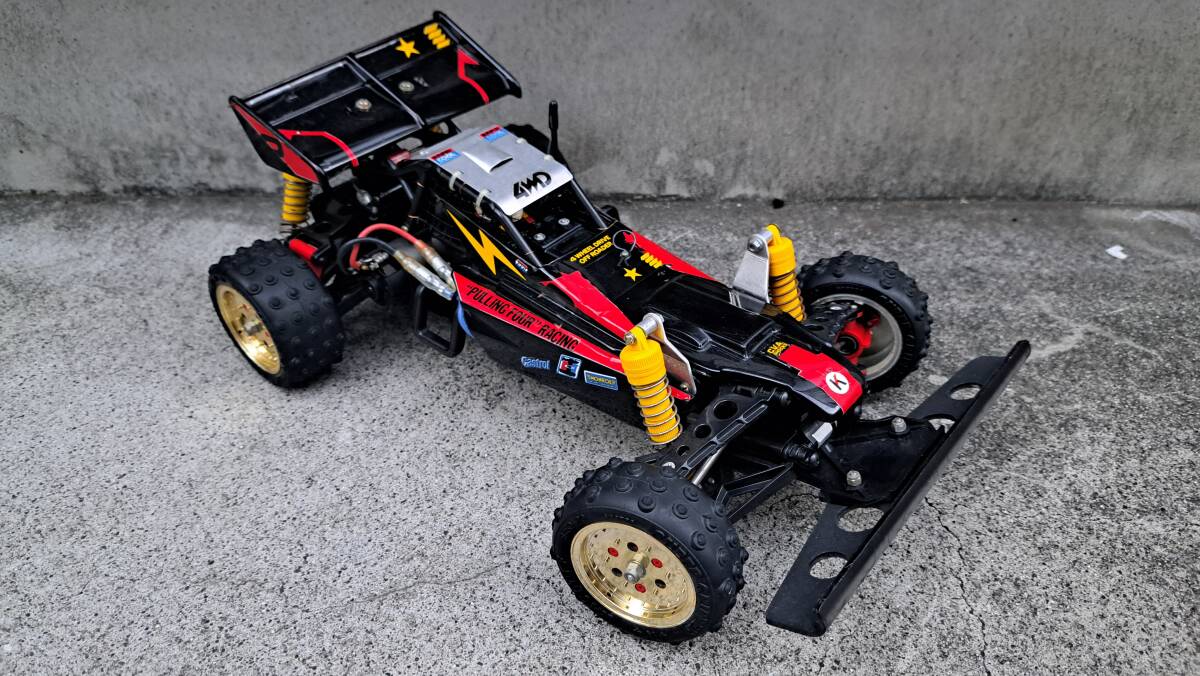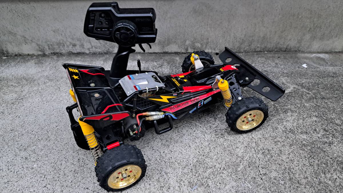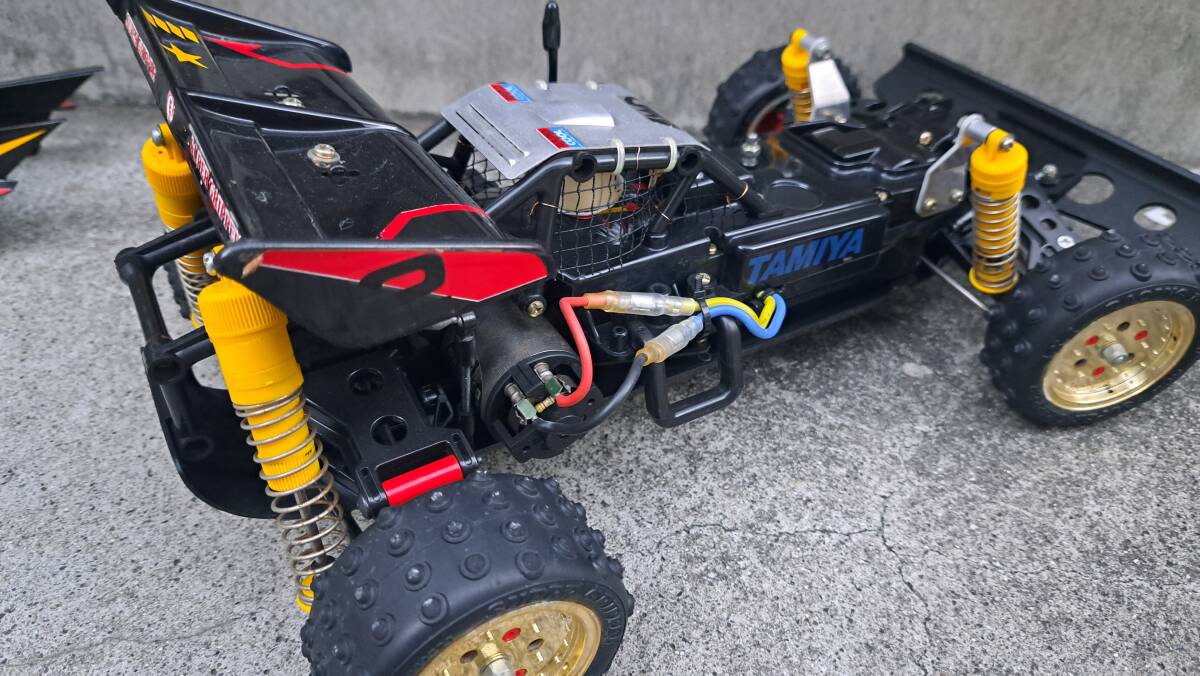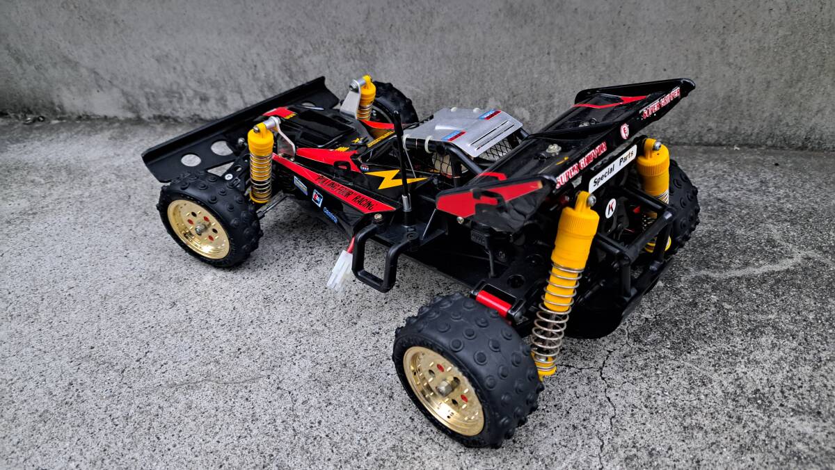 スーパーショット当初のスピードコントローラーから2.4Gのメカセットに替えてあります フロントバンパーも社外品です 他はノーマルです 中古につきノークレーム、ノーリターンでお願い致します。