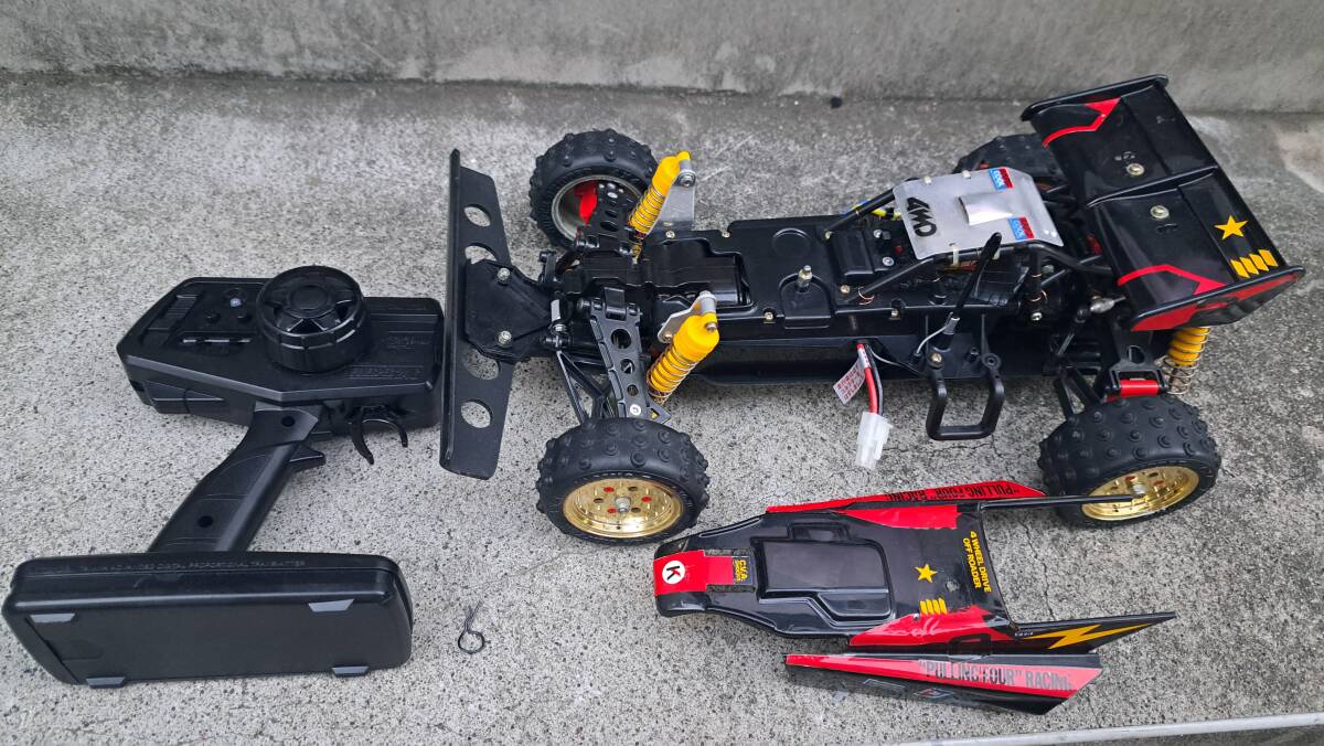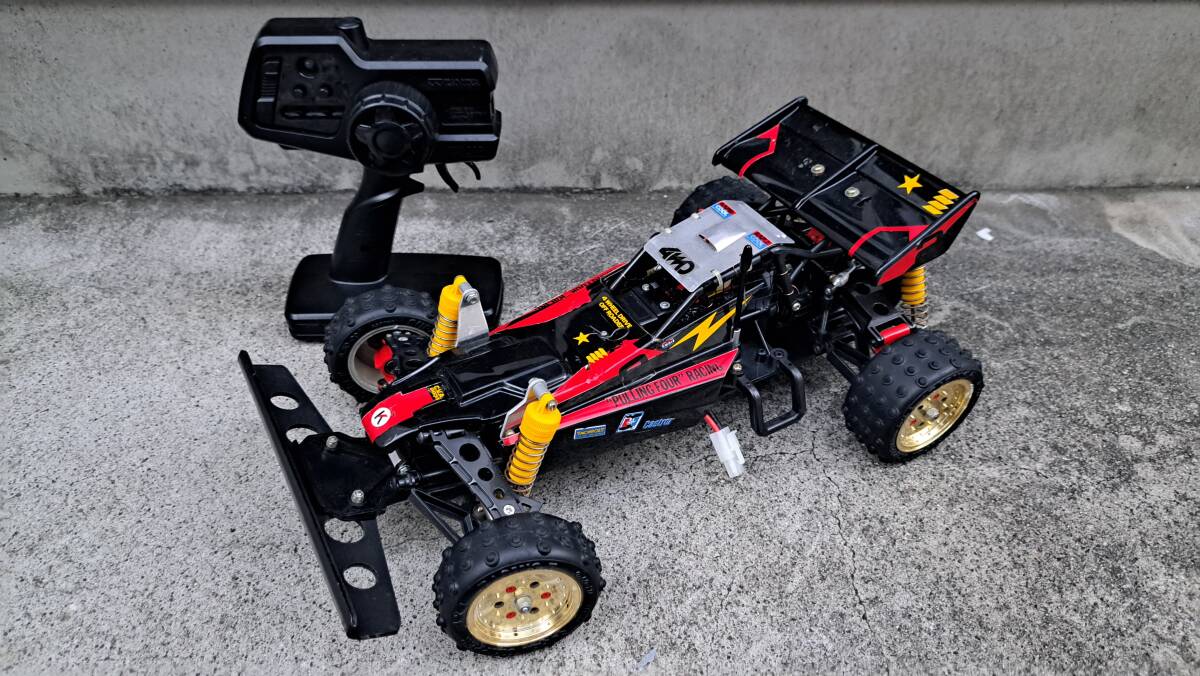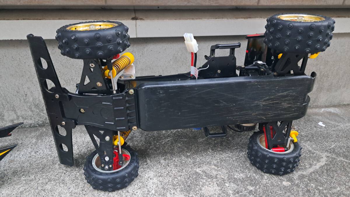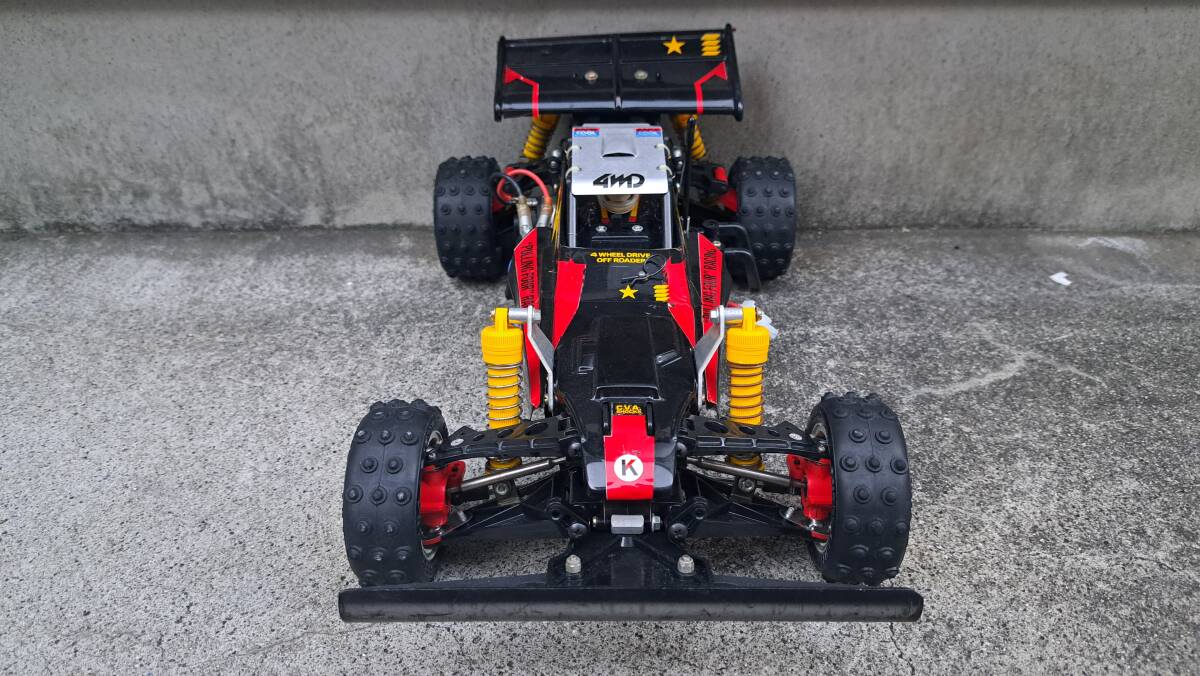 スーパーショット当初のスピードコントローラーから2.4Gのメカセットに替えてあります フロントバンパーも社外品です 他はノーマルです 中古につきノークレーム、ノーリターンでお願い致します。