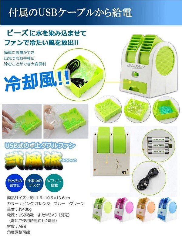 どこでも簡単に使える携帯型のダブル冷却ファン「弐風流」です♪ |
