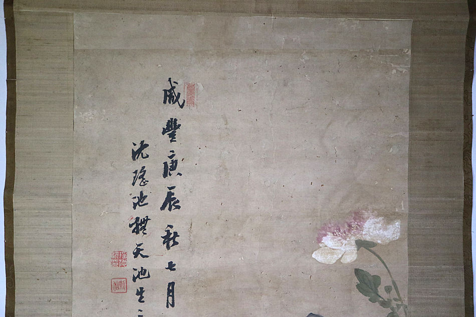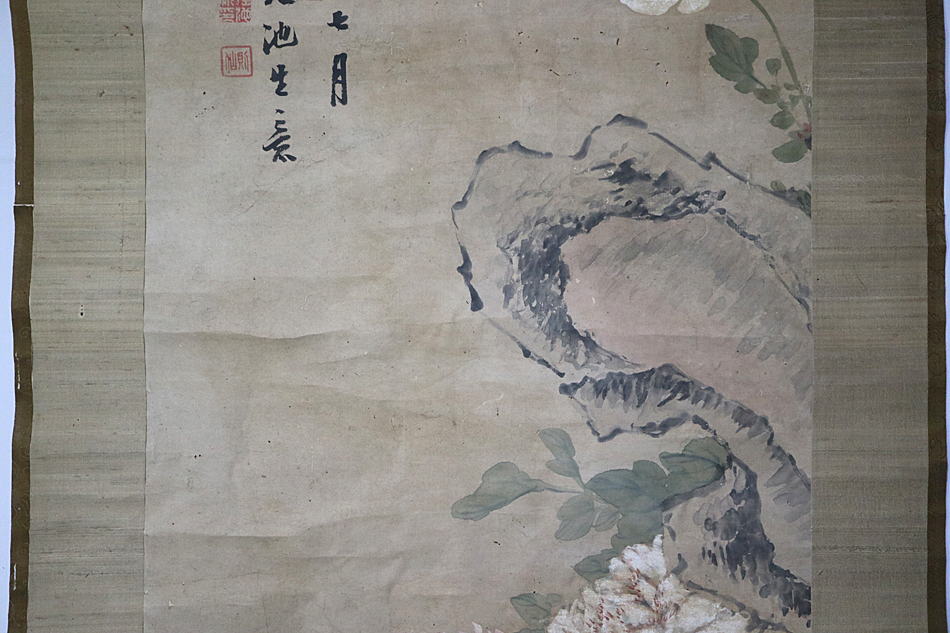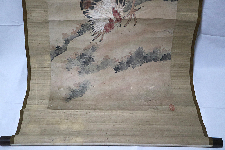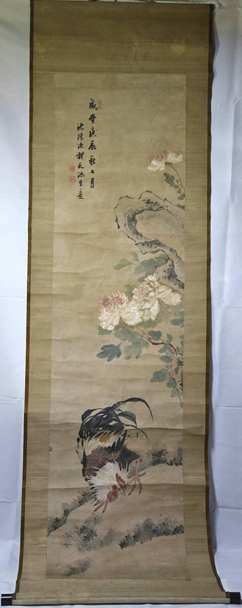 sgk14) 沈瑶池 撫天池生意 咸豊庚辰秋七月 牡丹鶏図 清代 掛軸 紙本 水墨画 墨書 墨絵 <中国画 絵画 商品説明 ◎状態は、商品説明文・画像・追加 詳細画像 にて、御確認・ご判断下さい。 (寸法)(総丈) 約213.5×62cm (軸先含む幅)約68.3cm (本紙 縦横) 約175×44.5cm (状態)本紙の上辺他傷み補修有り。表装や本紙虫損穴傷辺りなどに糊剥がれ浮いている所有り。 他 染み汚れ、折れ、荒れ、傷み、ヤケ等有り。 ●箱無し。用心のため紙箱に入れてお送りします。(画像参照) ● 商品は、画像に写っているものが全てとお考え下さい。それ以外の付属品はございません。 画像の色合い形状などは、自然光照明光照明角度により違いが生じます。 また古いものにつき商品によっては、商品の性質上 年代相応の汚れ・擦れ・小傷等有ります。ご了承下さい。 ◆ 商品説明に間違いや説明不足、状態の見落とし等が有るかもしれません。 気になることがございましたら御気軽にご質問下さい。 皆様のご入札をお待ちしております。 ☆送料のお知らせ 送料は、佐川急便(飛脚宅配便) 2300円(東北 2600円・北海道 3100円・沖縄 6100円)となります。 ※ 同梱可能です。(注)内容により、発送方法・送料が変わる場合や、お受けできない場合もございます。 ◎お取引方法 取引ナビでのお取引となります。 複数のご落札で 一括決済・同梱 を ご希望の場合、取引ナビにて「まとめての取引」をご利用下さい。 ◎お支払い方法 「かんたん決済」となります。・スムーズなお取引をお願い致します。 ☆(お願い)ご落札品が届きましたら、速やかに 「受取連絡」をお願い致します。 ☆当店はインボイス免税事業者です。 インボイス(適格請求書)の発行に対応しておりません。 ◎「評価」について ・ご希望の方と、評価を頂いた方のみ入れさせて頂きます。 (ご入札でのお願い) ● 必ず、商品追加画像・説明文等を全てご確認頂き、お客様ご自身のご判断と責任の上 ご入札下さい。 ● ご入札後の入札取消しには対応しておりません。 十分説明をご確認のうえ慎重に入札して下さい。 ● 説明不足や説明間違いもあるかと思います。気になることがございましたら、お気軽にご質問下さい。 ● 商品の性質上、極端に細かく状態に拘り些細な事を欠点と気にされる方は、トラブル防止のためご入札をご遠慮下さい。 古いもの、アラを探せばキリがありません。神経質なこだわりその種のクレームの返品は 一切お受けできません。 ● 見解の相違による言いがかり・クレームの返品等もご遠慮下さい。 ● 落札後の取引キャンセルは不可です。ご遠慮下さい。 ● オークションです。開始価格から上のご入札は自己判断での自己責任となります。 ● 古いもの骨董古美術の世界にご理解のある 良識あるお客様とのお取引を望んでおります。 ◎[真作]表記について 真作保証致します。 ・万が一、正式の所定鑑定機関や鑑定人、現存作家本人により 贋作と判明した場合は 落札代金、送料を 全額ご返金致します。 ・贋作と判断された該当商品とその所定鑑定機関等の裏付けのある書面を 提示または同梱の上ご返品下さい。 ・返金は落札金額と送料のみとなります。 ・鑑定に関わる鑑定料やその他の諸経費につきましては、 落札者負担となります。 ・保証期間は落札日より30日間とさせていただきます。 (但し、画廊業者・第三者・個人等の目利きの鑑定は保証対象外と致します。) |
