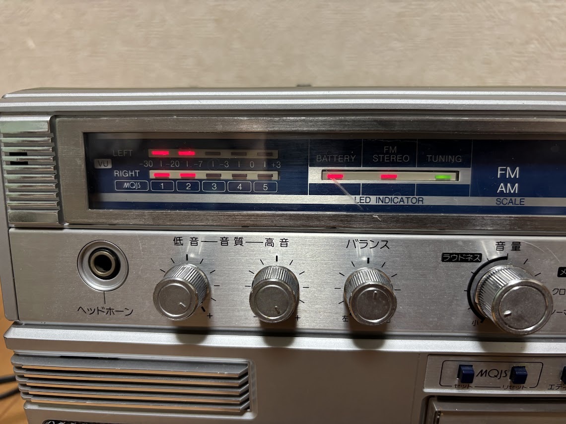 ご覧いただき,有難うございます。 東芝 BOM BEAT RT-S80の出品になります。 簡易メンテ・一部動作確認済みです。 メンテ内容 ・キャビネット丸洗い洗浄 ・スピーカーグリル再塗装 ・内部埃除去 ・キャプスタンベルト・カウンターベルト交換 ・カセットメカ部清掃・給脂 ・各ツマミ磨き上げ ・セレクトスイッチ・ボリューム接点簡易清掃 ・ヘッド研磨(錆取り) ・テープ走行スピード調整 ・ヘッド消磁済み ・アジマス調整 以下の動作確認済みです ・FM・AMラジオ受信OK ・カセット 再生・早送り・巻き戻し、録音動作OK ・頭出し機能 OK ・外部入力出音確認OK ・その他の機能は確認しておりません 動作確認=完動品と勘違いされる方がおられますが、全ての動作を確認しておりません。他に不具合が有るかもしれません また、短時間での確認ですので、動いていた物が急に動かなくなる場合も考えられます。 当方も今後どんな不具合出るか予測つきませんので、ジャンク扱いとします。 電源ケーブルは付属しません。 入札にあたって注意事項を必ずお読み下さい。 | |