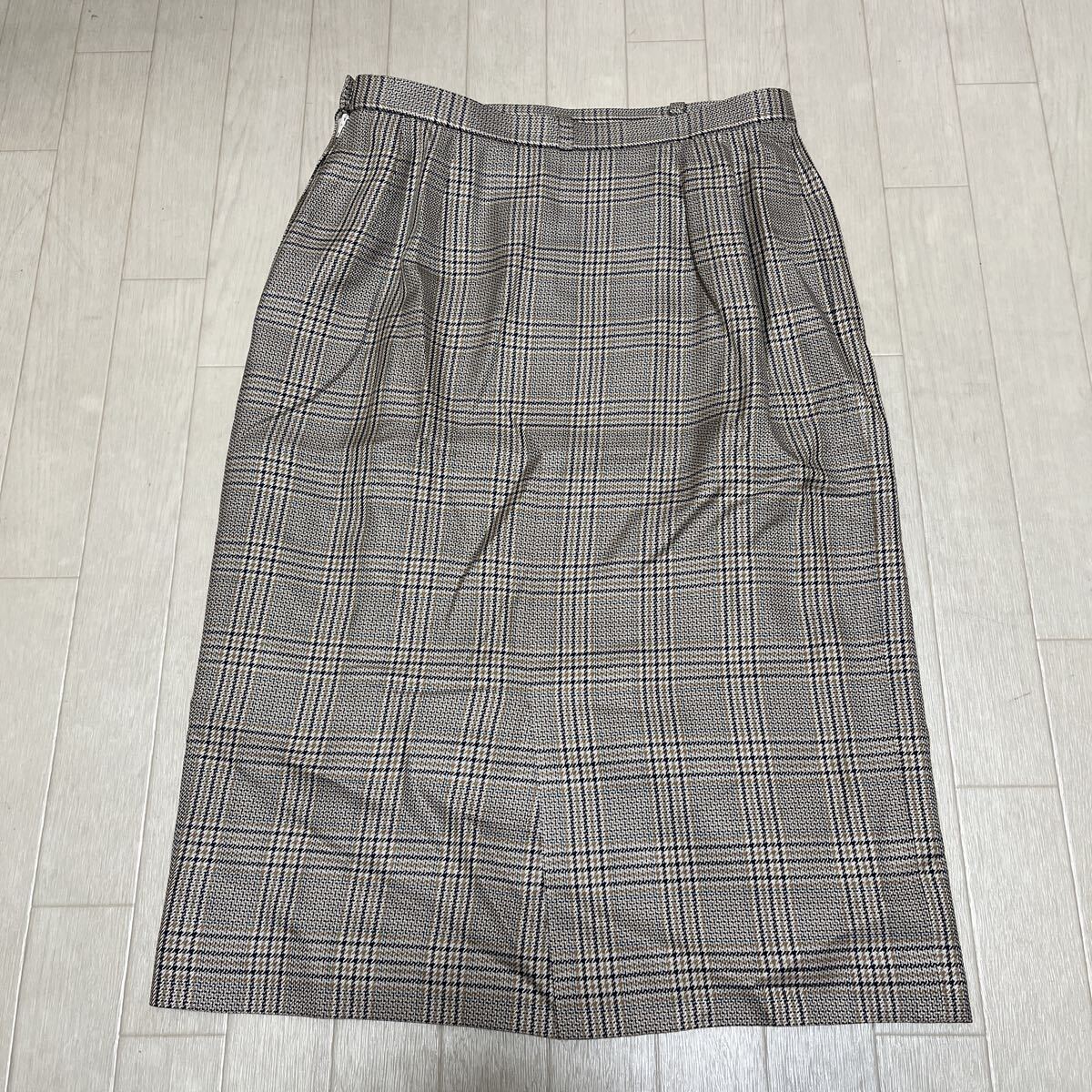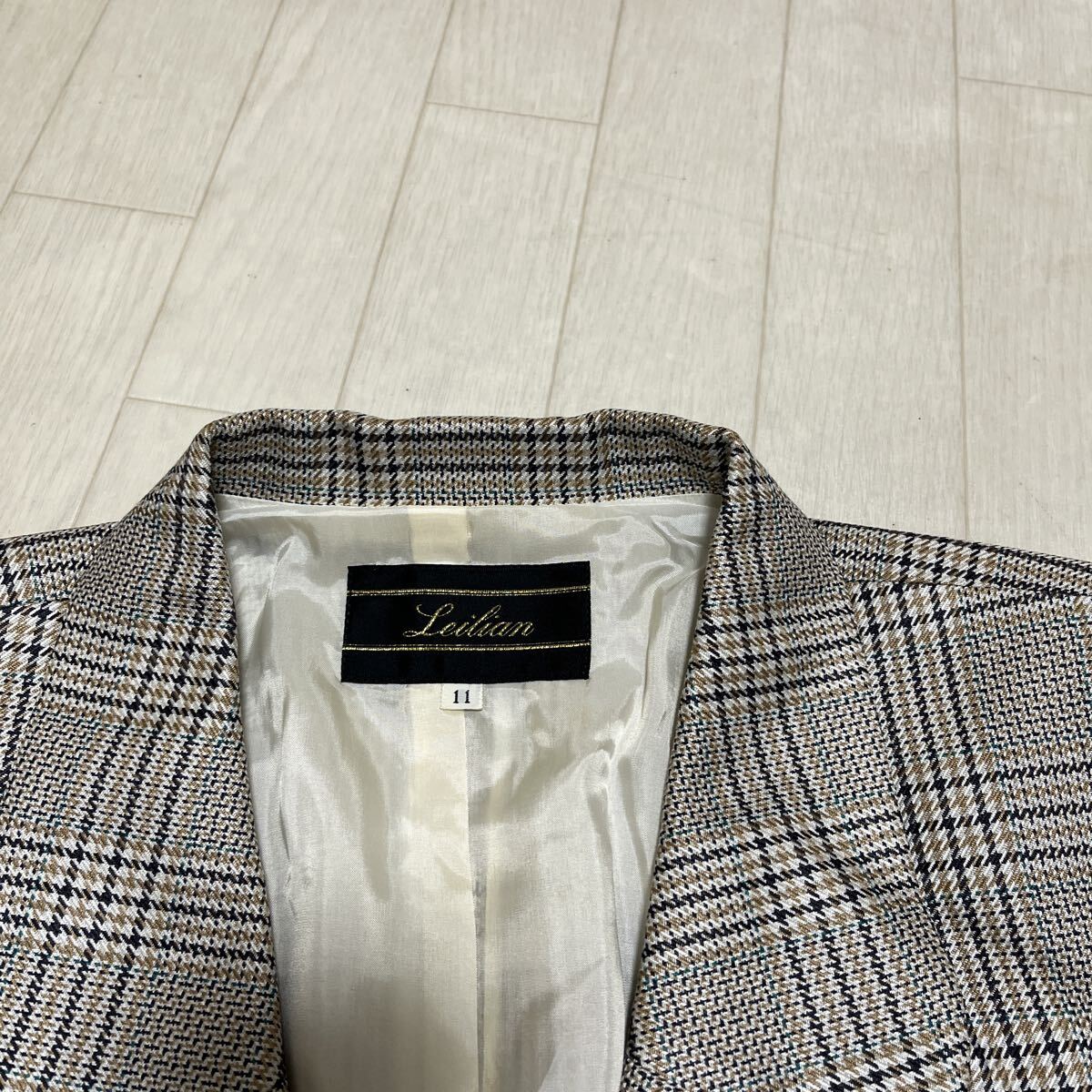 K31★① Leilian レリアン セットアップ テーラードジャケット スカート チェック シルク 11 レディース ホワイト ベージュ ネイビー