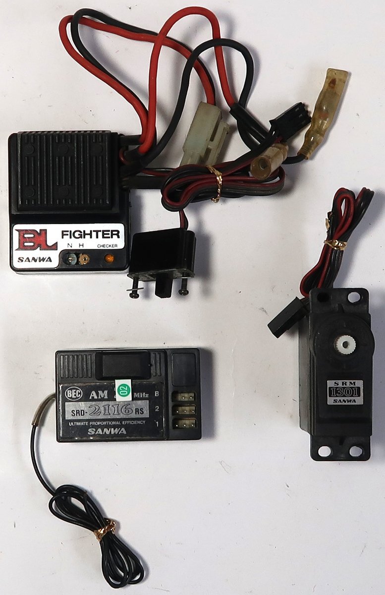 出品は画像の物が全てです。使用品ですので汚れや擦り傷は有ります。サーボはSRM-1301です。受信機はでSRD-2116RSす。アンプはBL FIGHTERです。テストしましたが操作はできましたし、動作しております。バンドは2が付属します。出品前にもきちんと基本的な事は問題ないかチェックした上で出品していますが、発送後になにか問題がありましてもサポートは出来ませんし、返品やクレームは一切受け入れられませんのでそれを納得した上で御入札下さい。