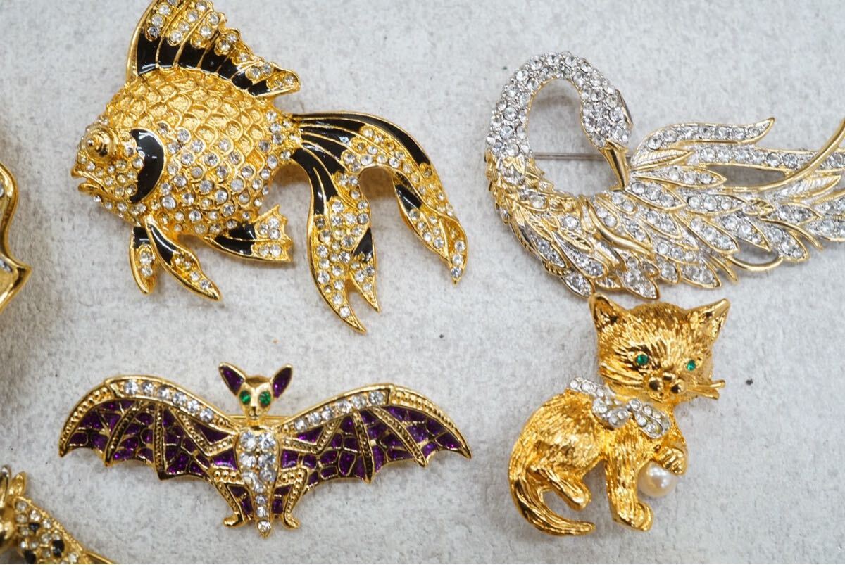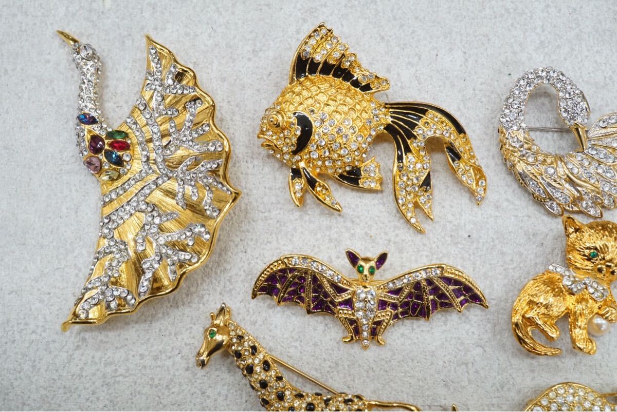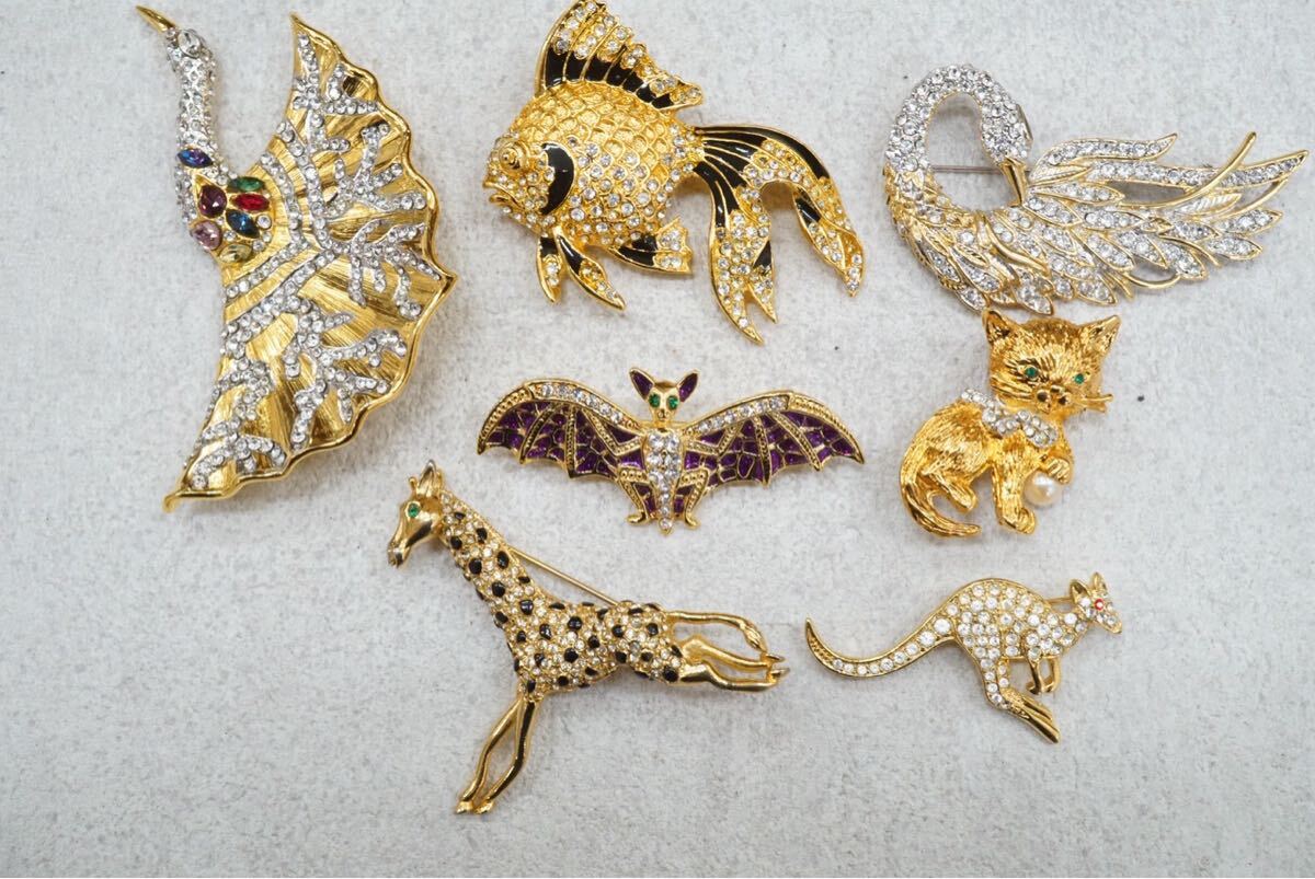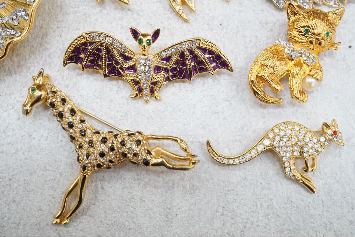B591 海外製含む アニマル 鳥類など ラインストーン ゴールドカラー ブローチ ヴィンテージ アクセサリー 大量 セット まとめて おまとめ