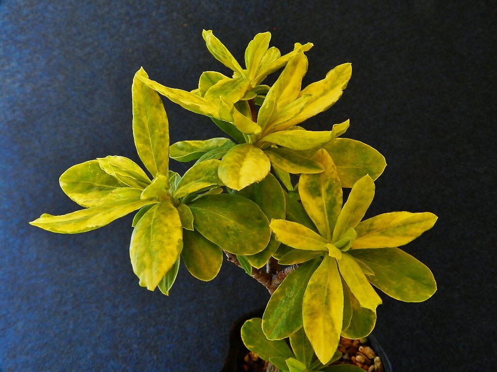 新葉、黄散で春より徐々に紺覆輪を呈すようになります。